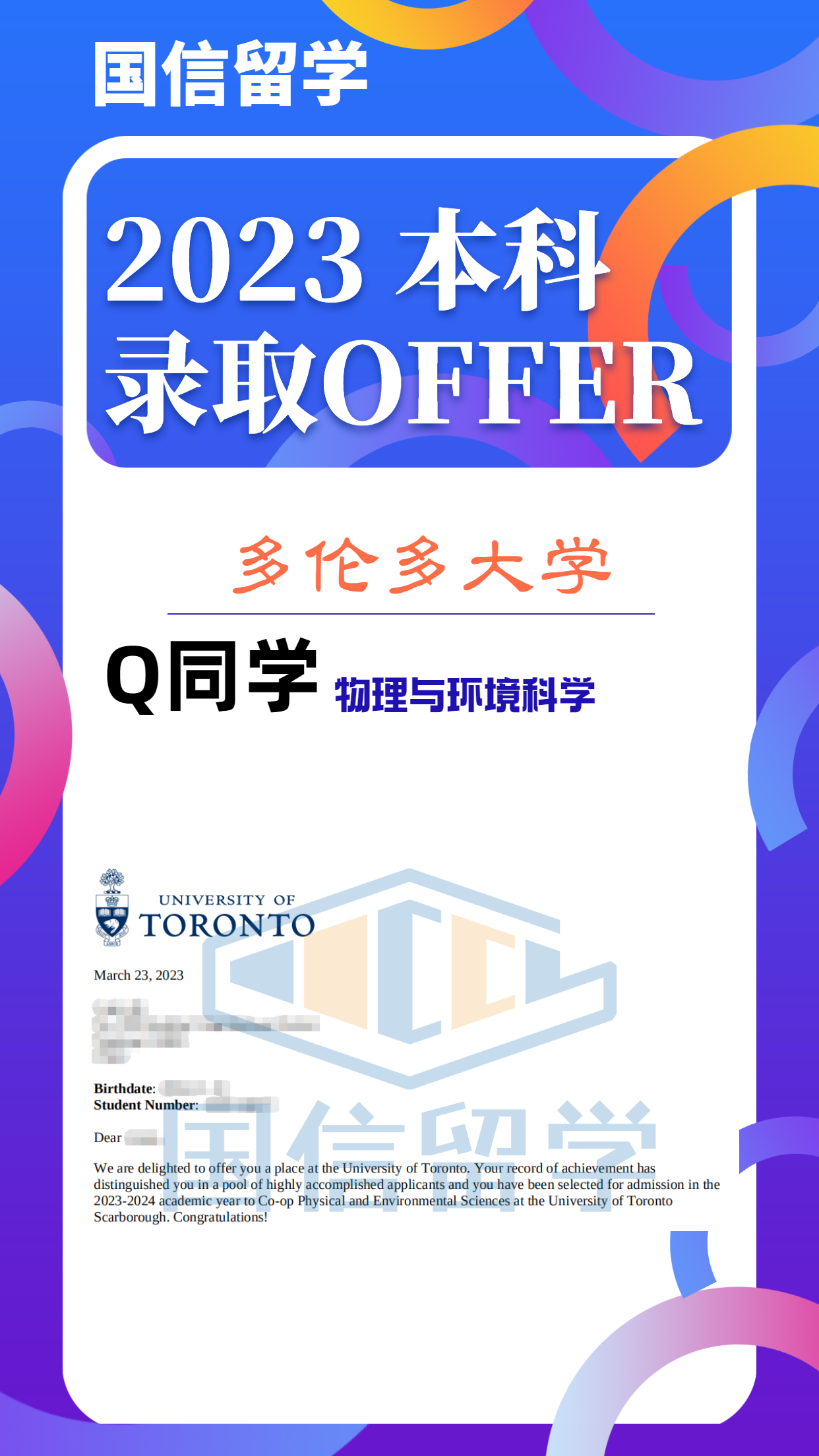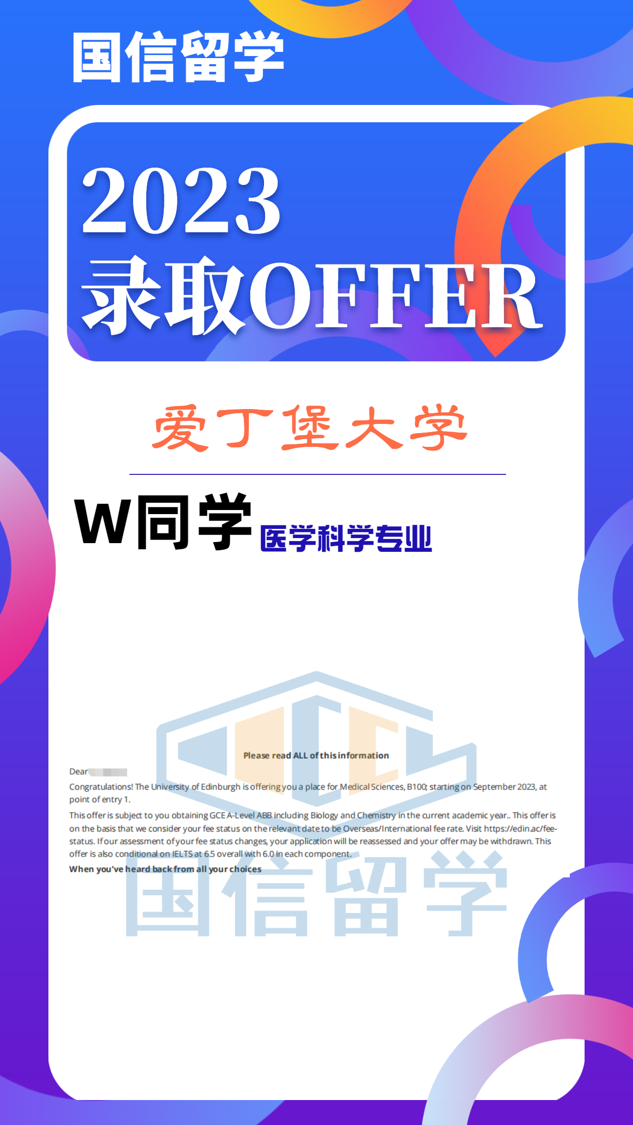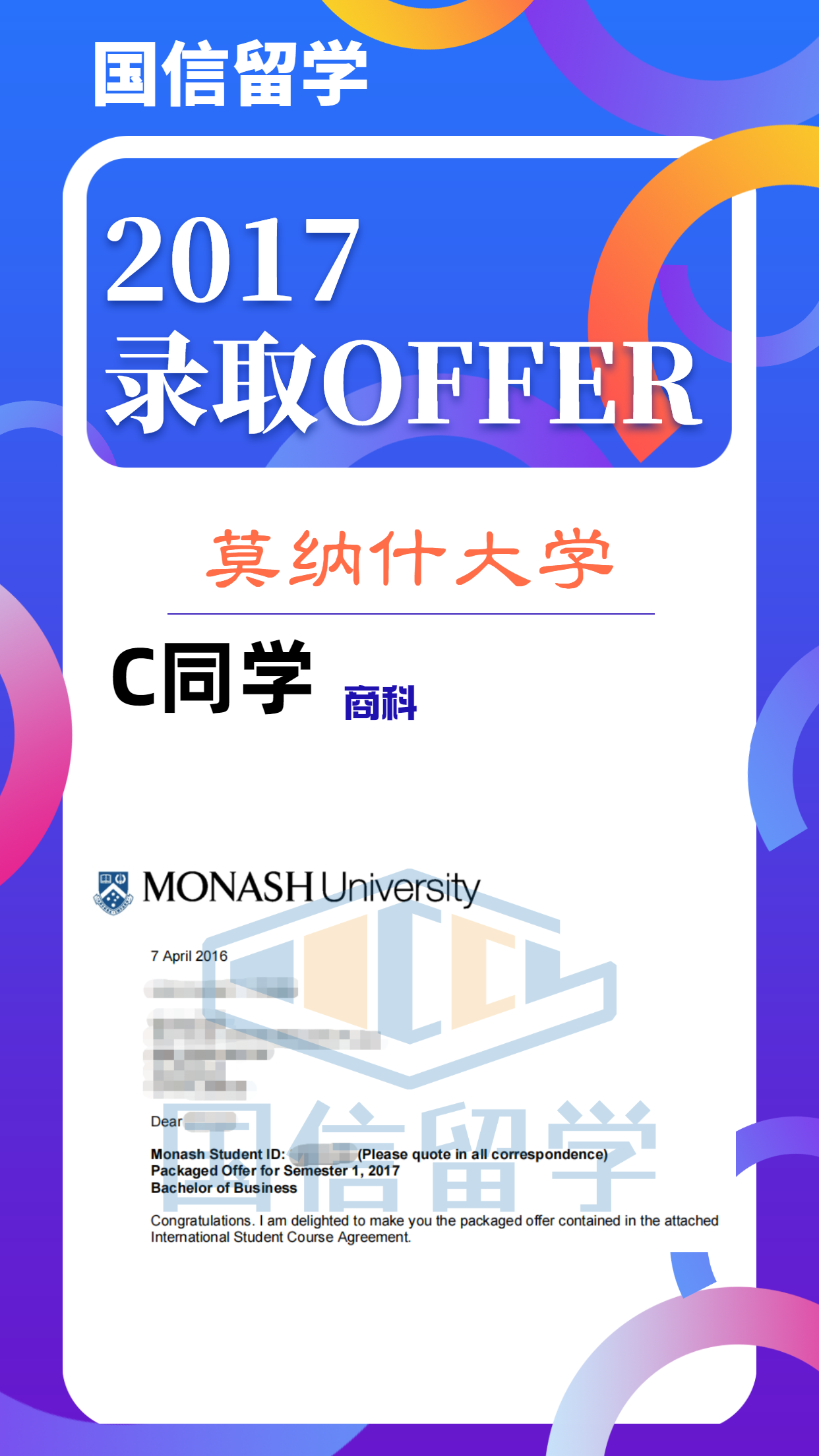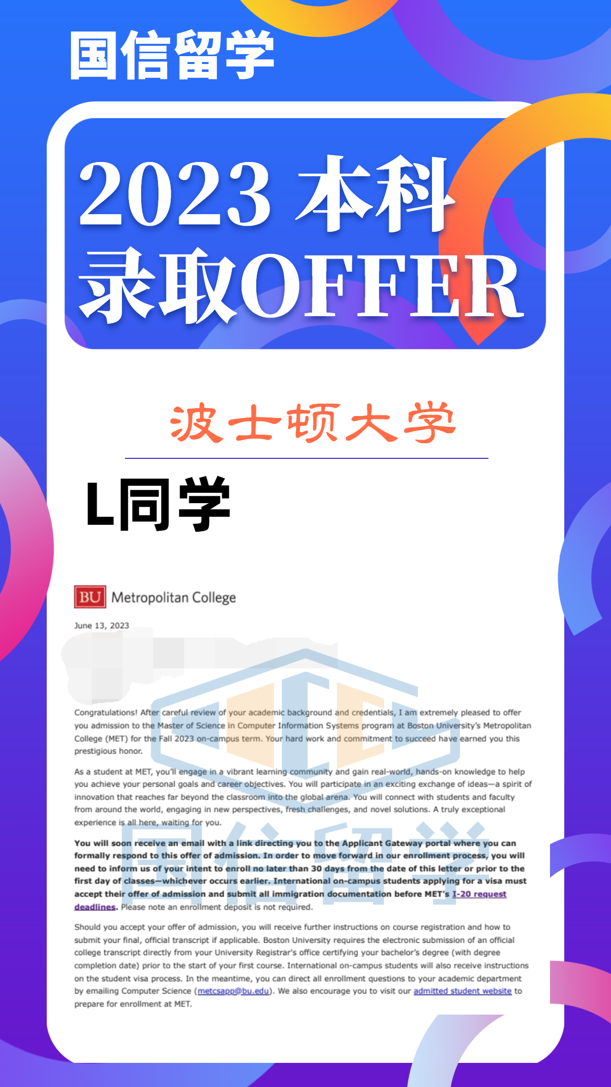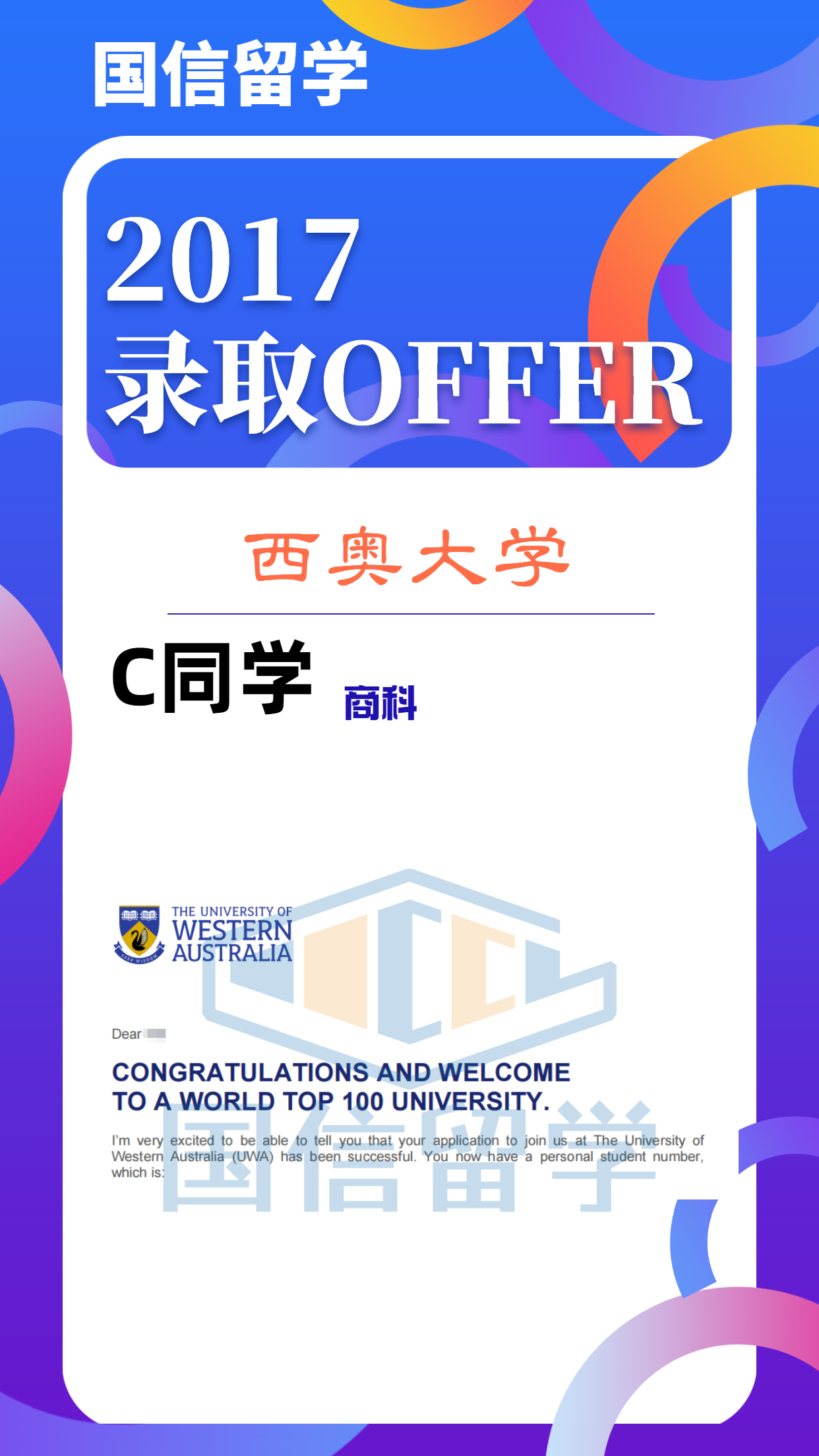 实力认证,国信留学已帮助学子获得 13000+枚世界知名院校录取
