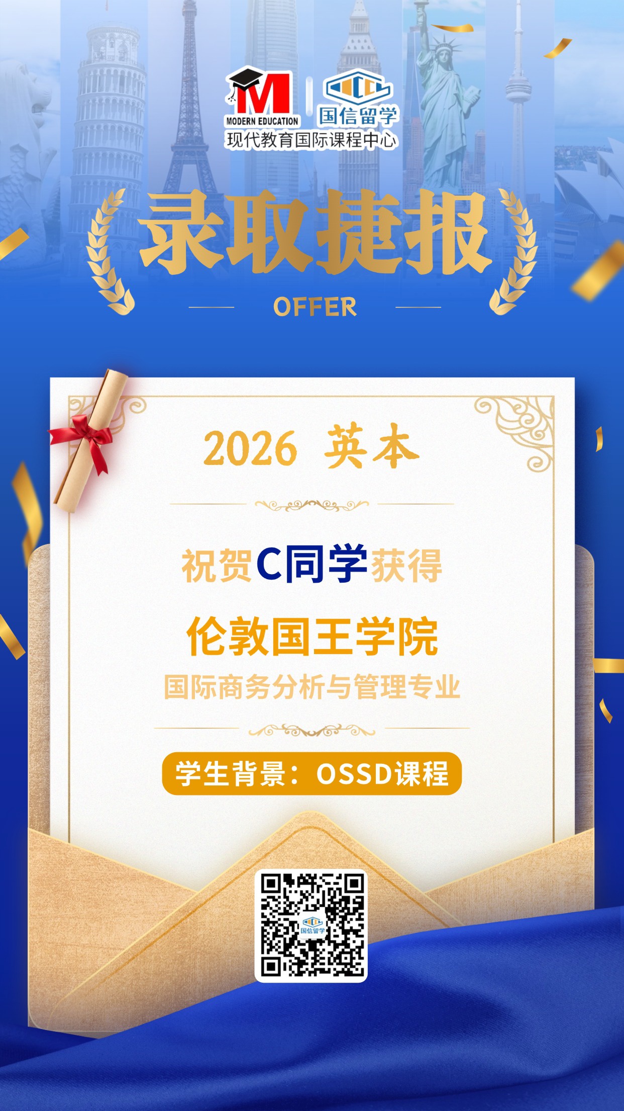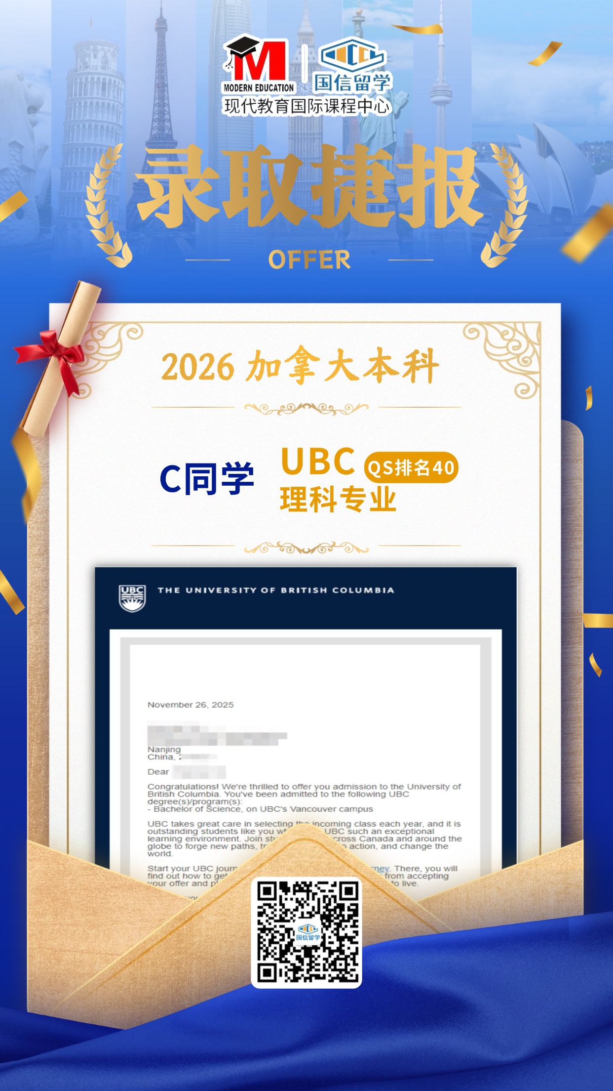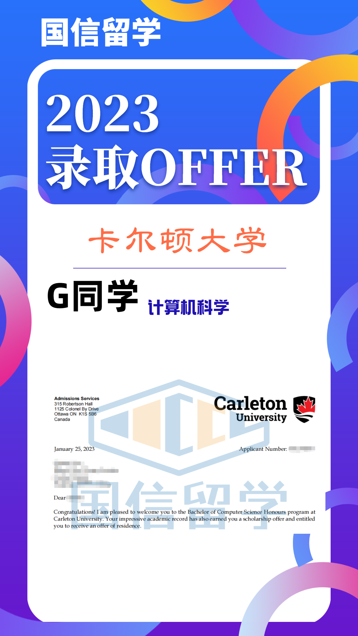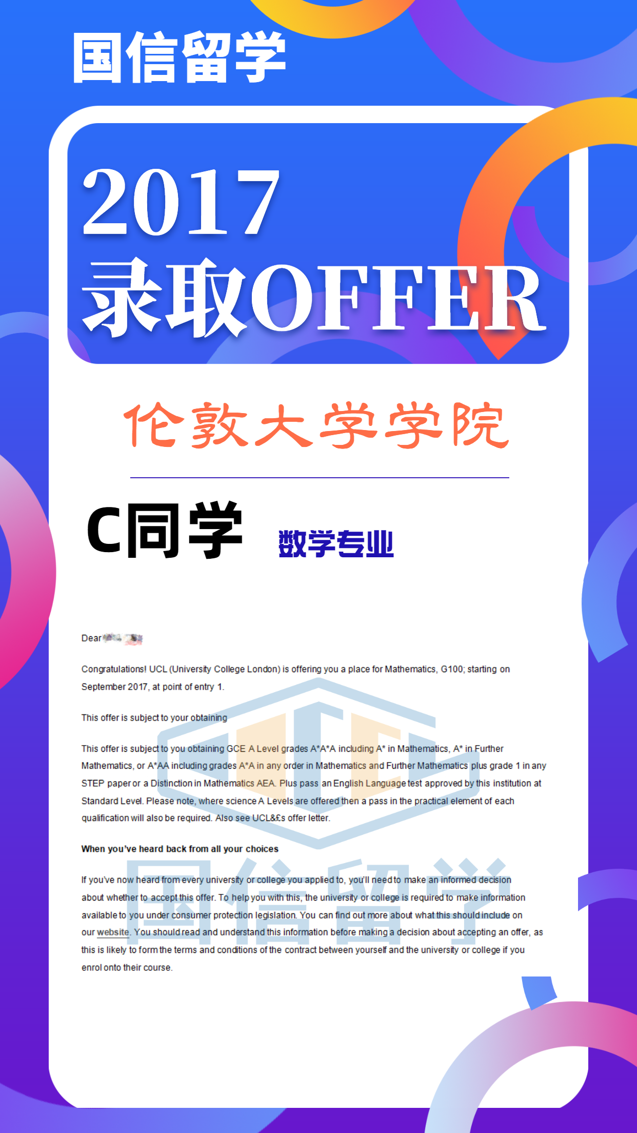 实力认证,国信留学已帮助学子获得 13000+枚世界知名院校录取