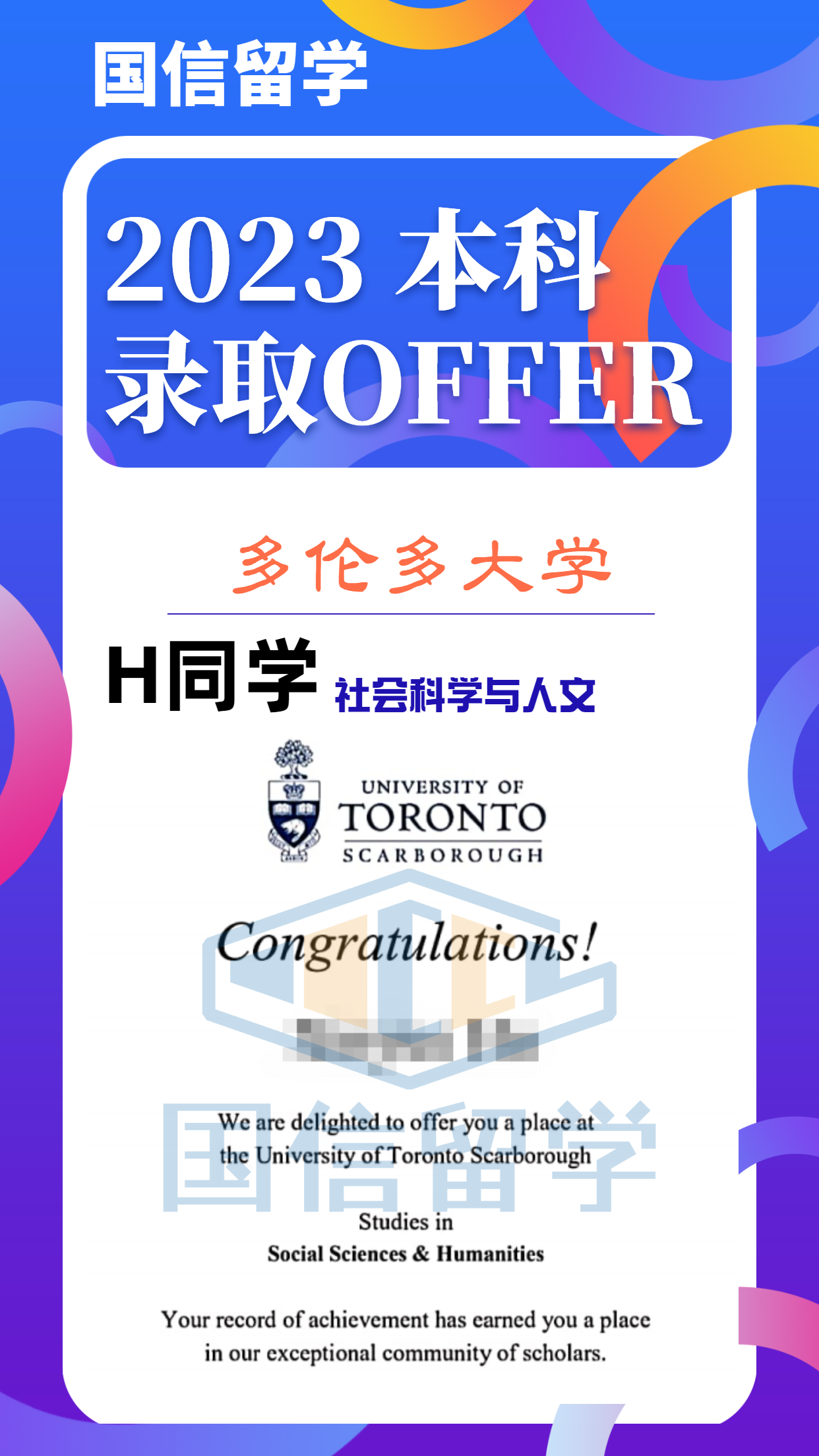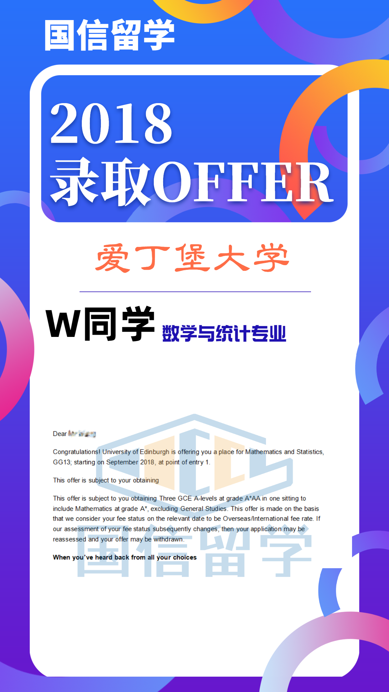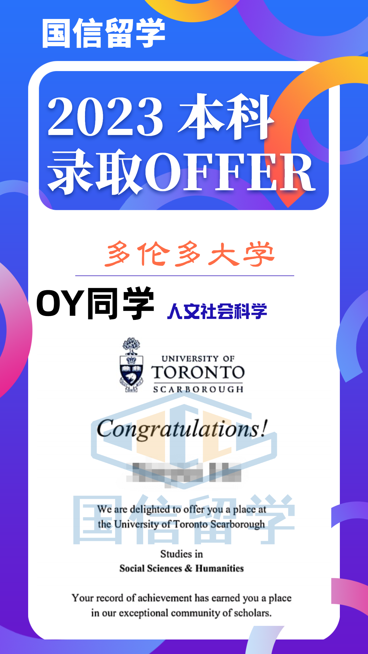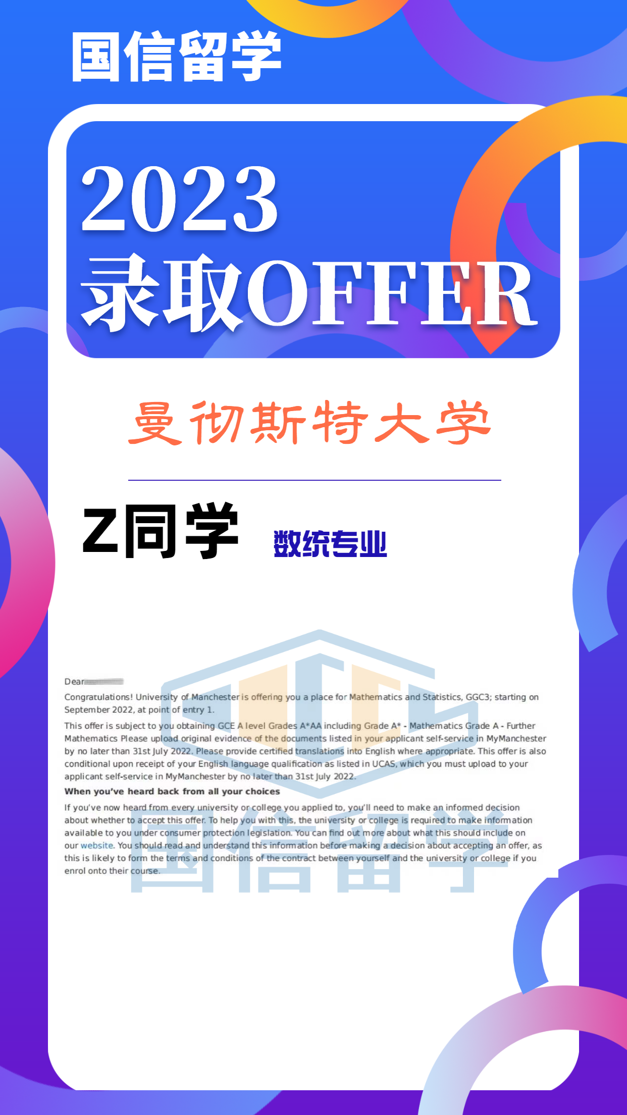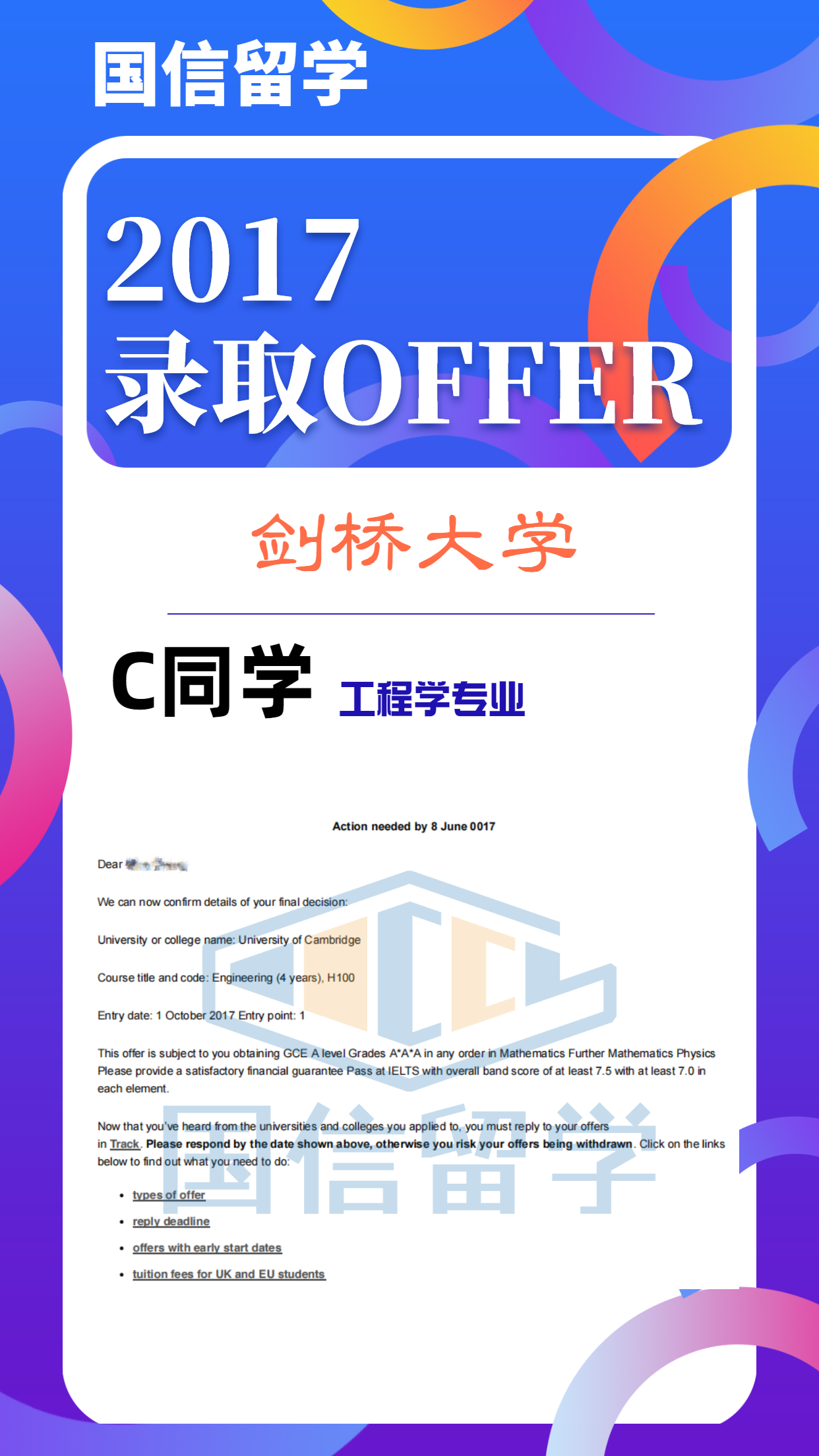 实力认证,国信留学已帮助学子获得 13000+枚世界知名院校录取