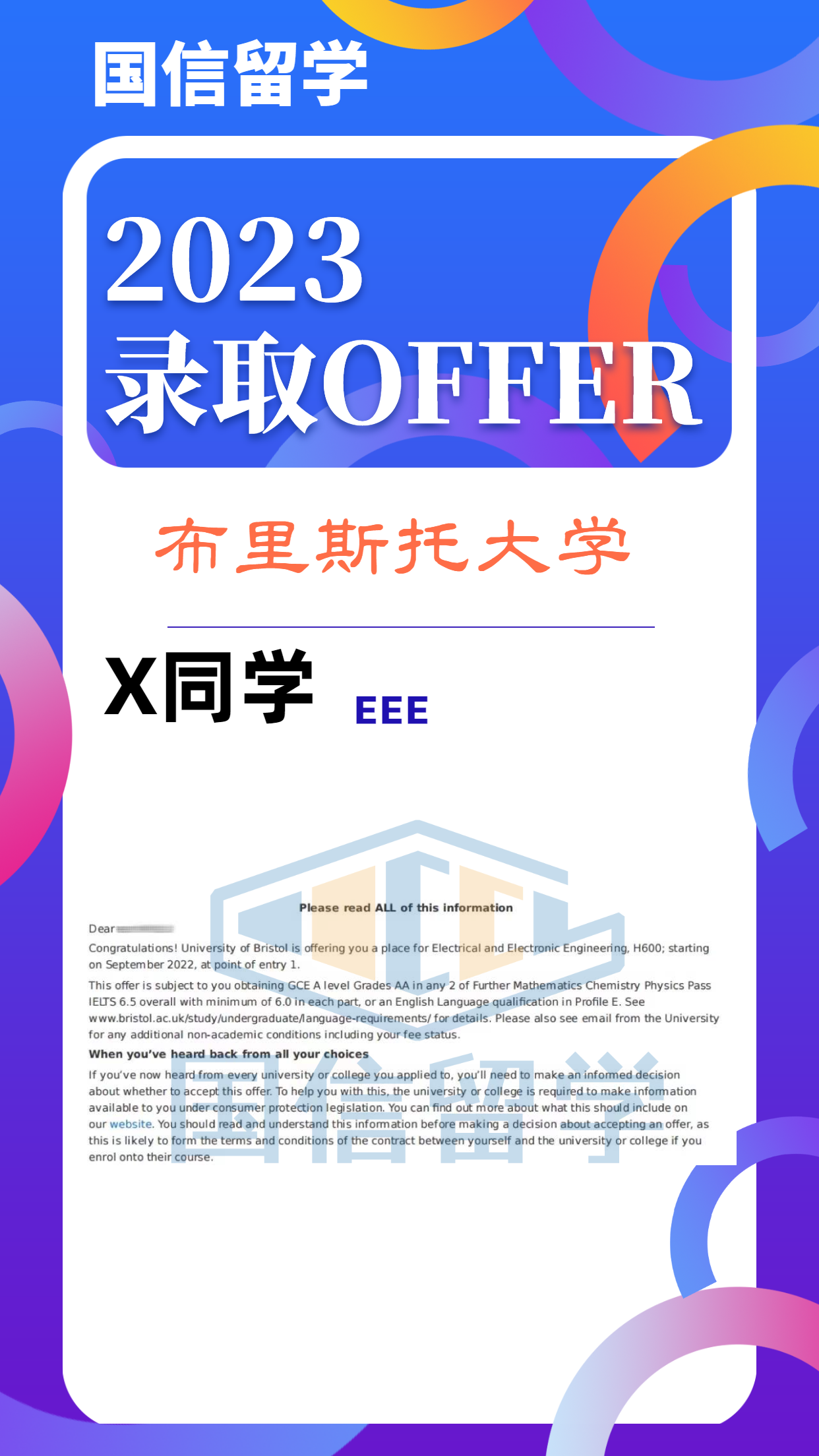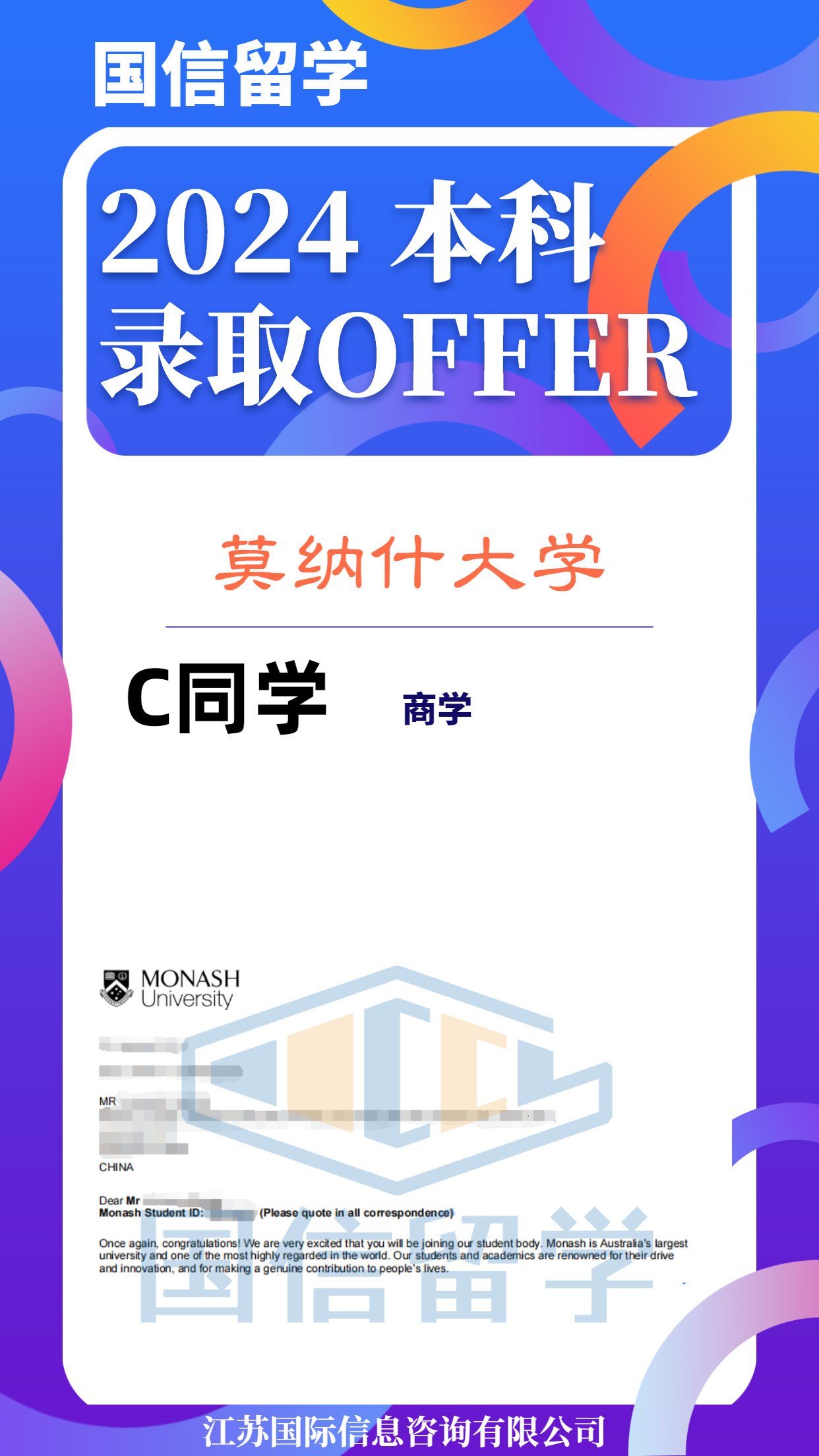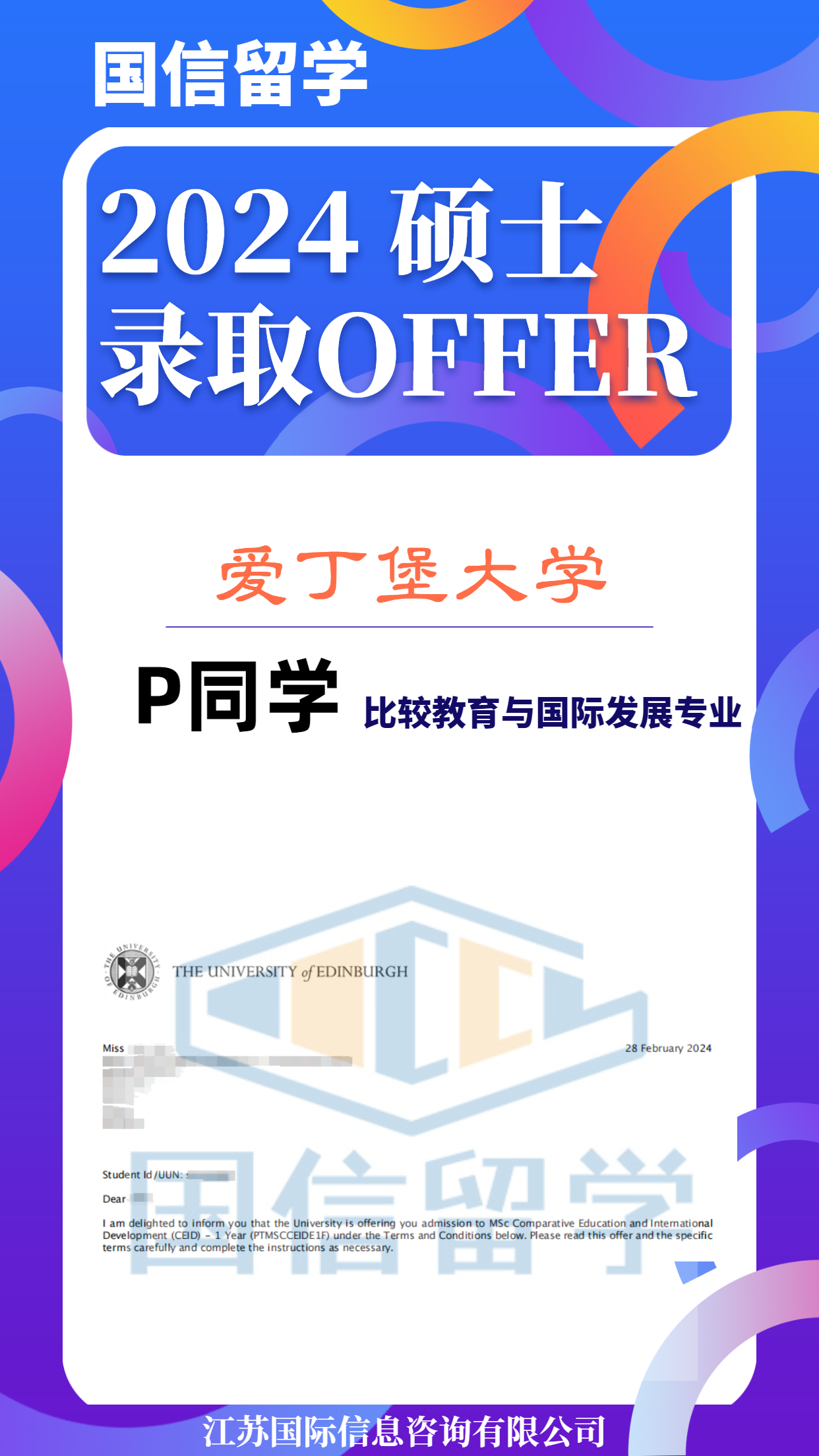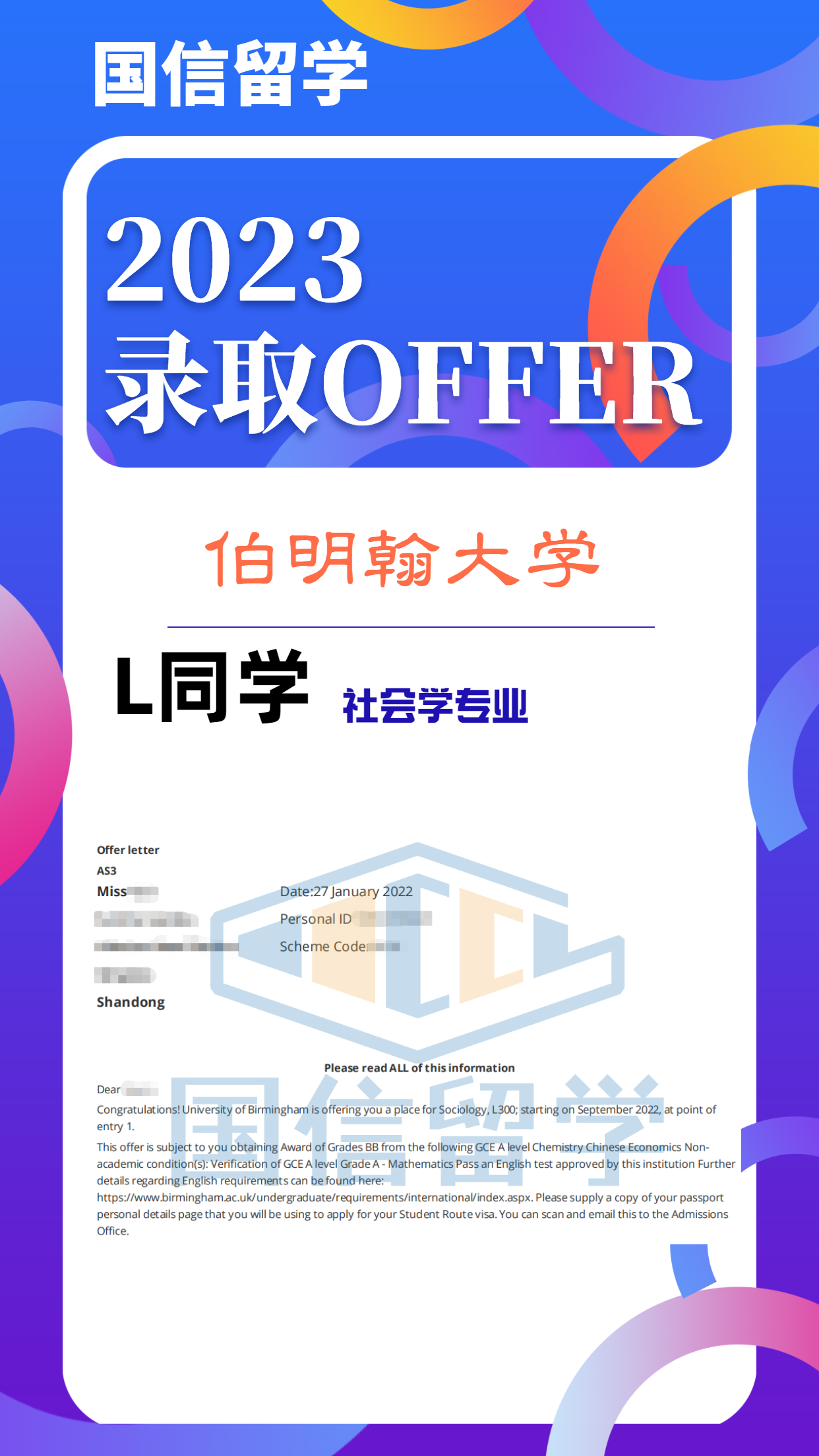 实力认证,国信留学已帮助学子获得 13000+枚世界知名院校录取