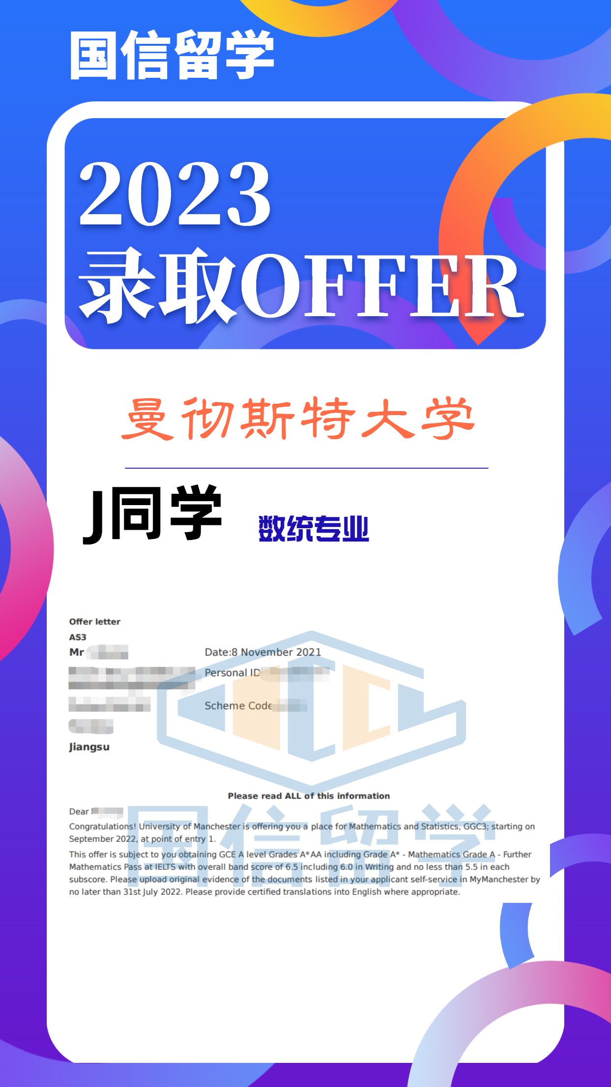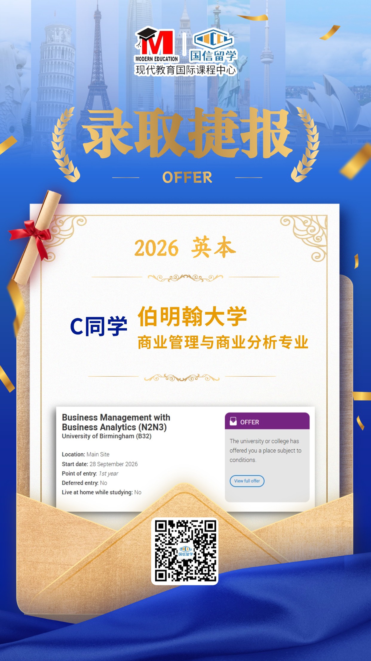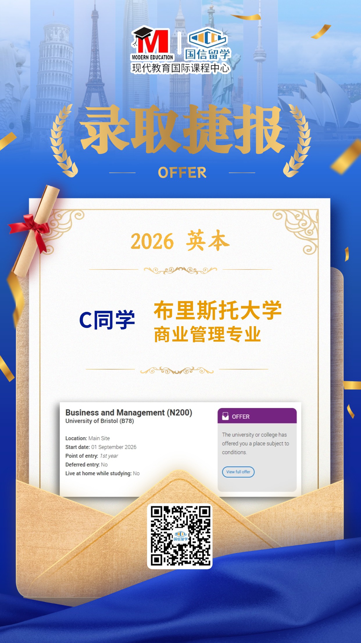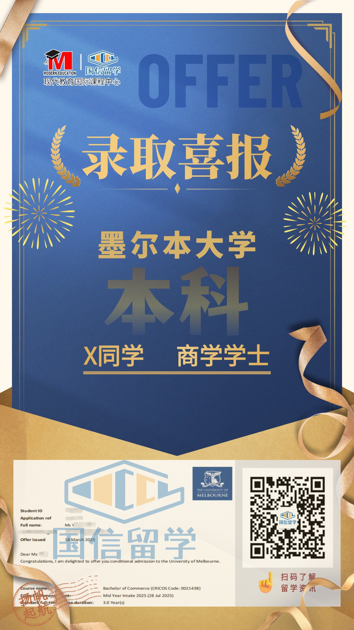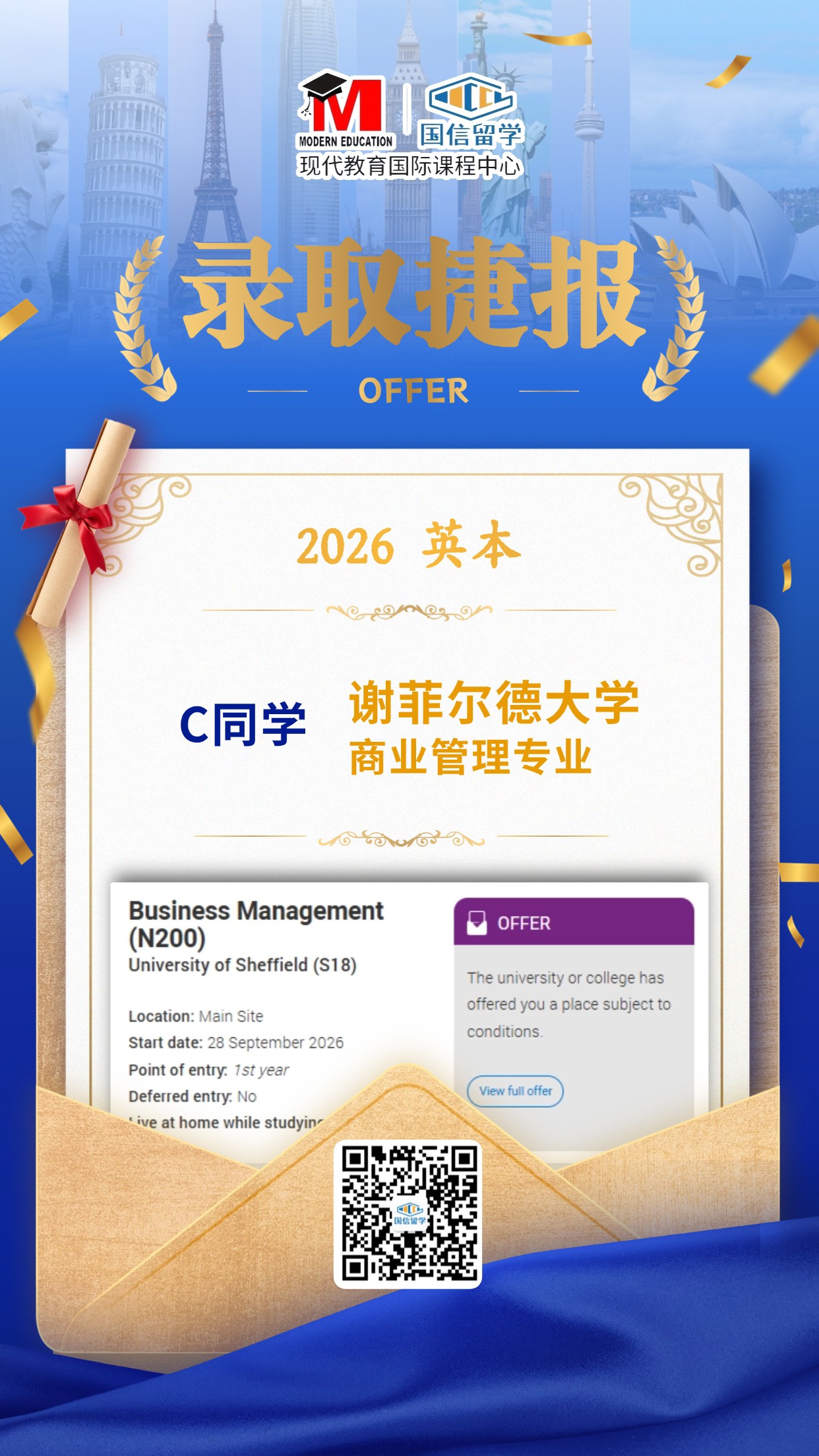 实力认证,国信留学已帮助学子获得 13000+枚世界知名院校录取