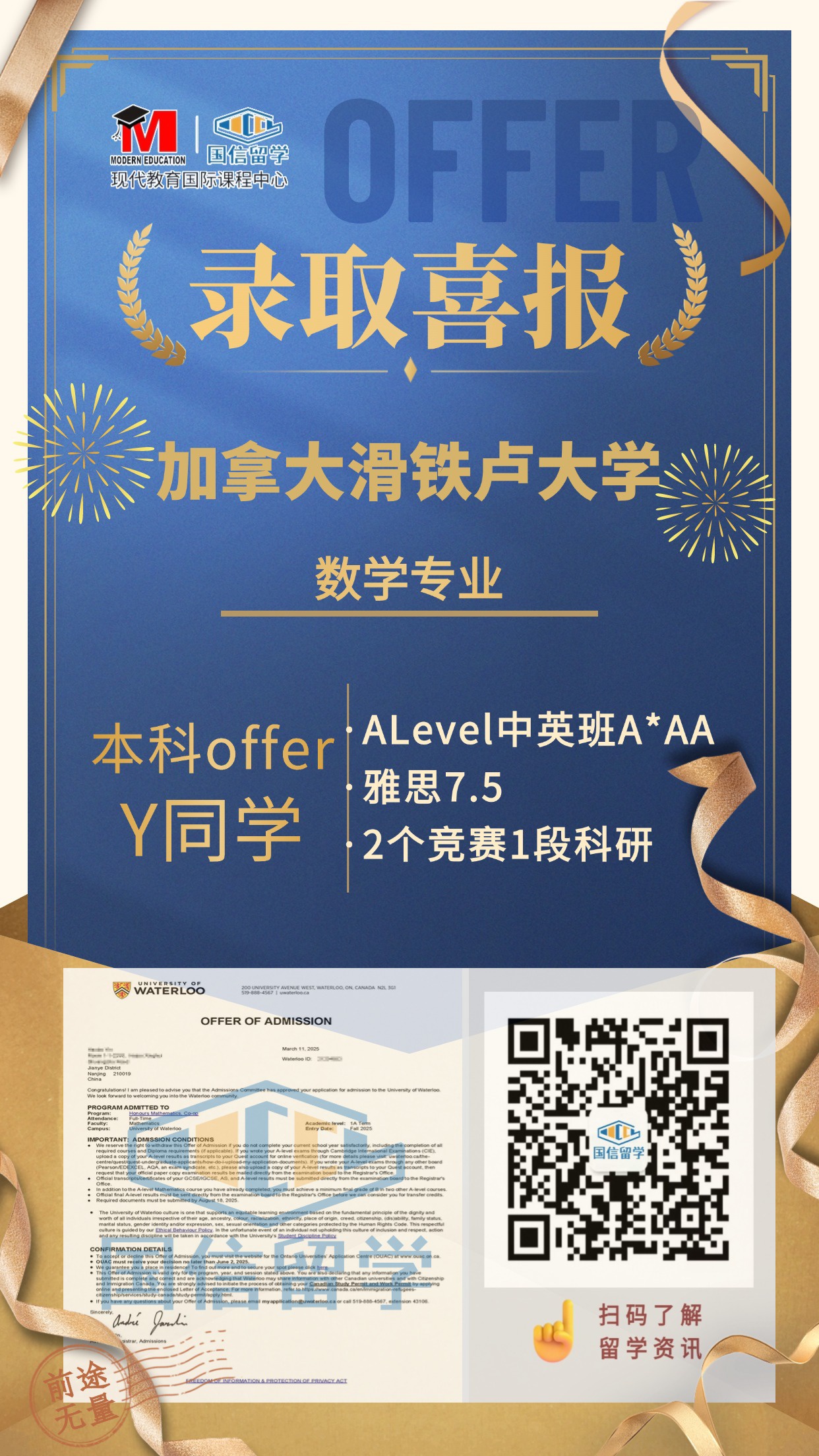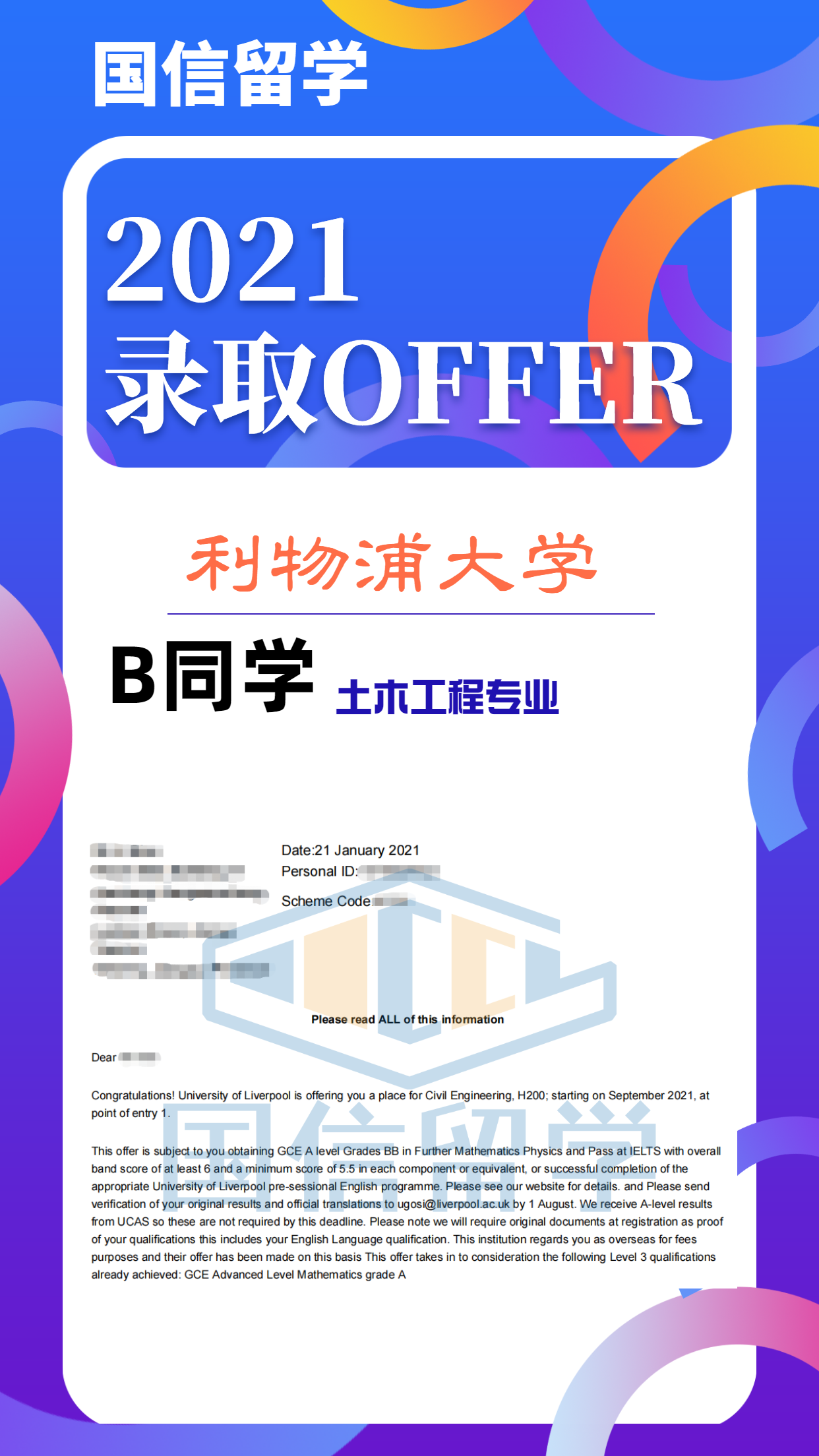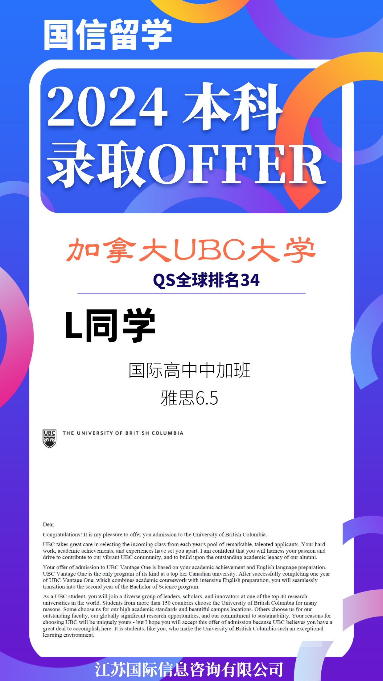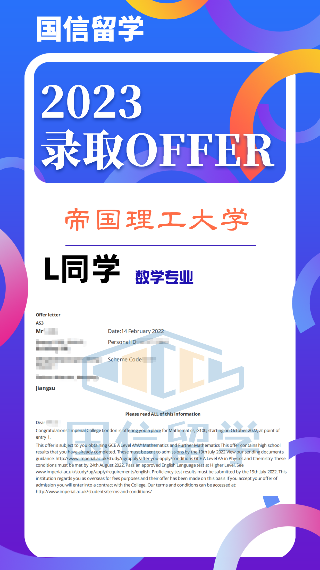 实力认证,国信留学已帮助学子获得 13000+枚世界知名院校录取