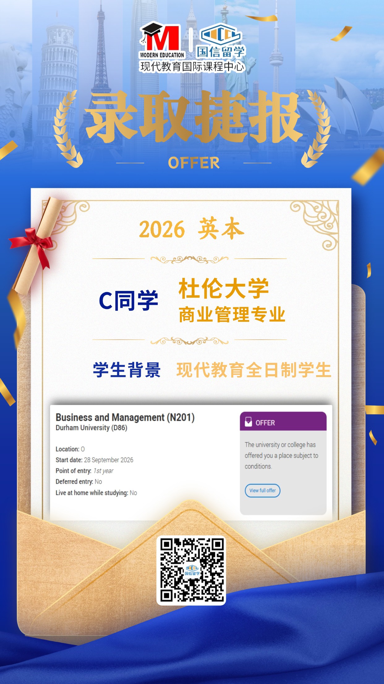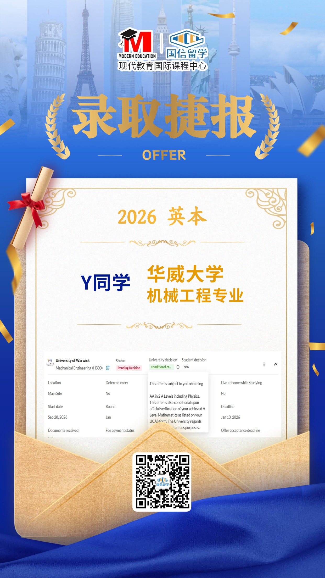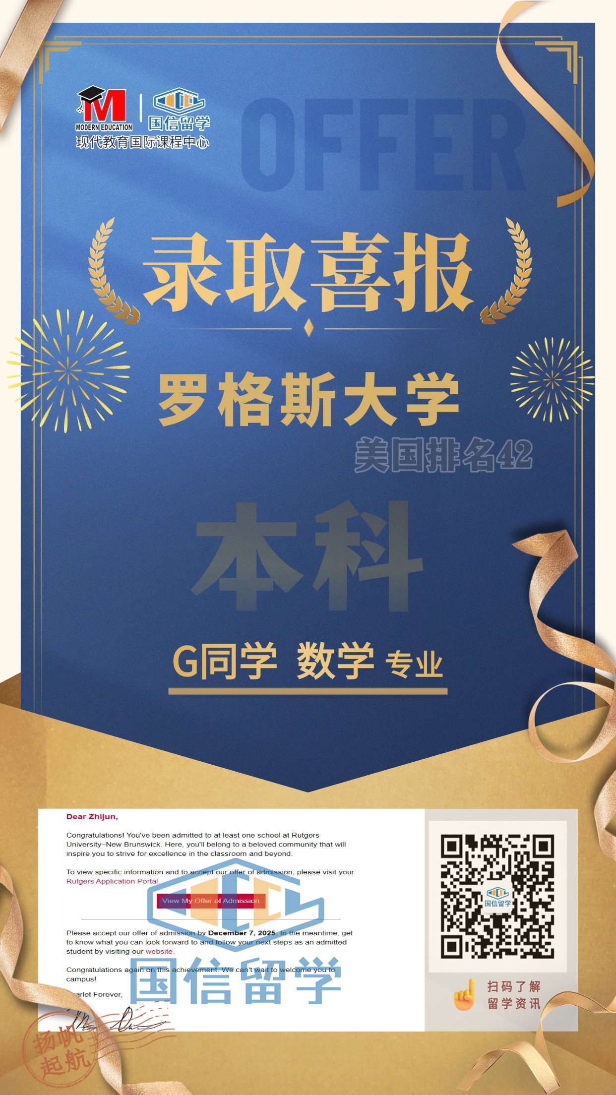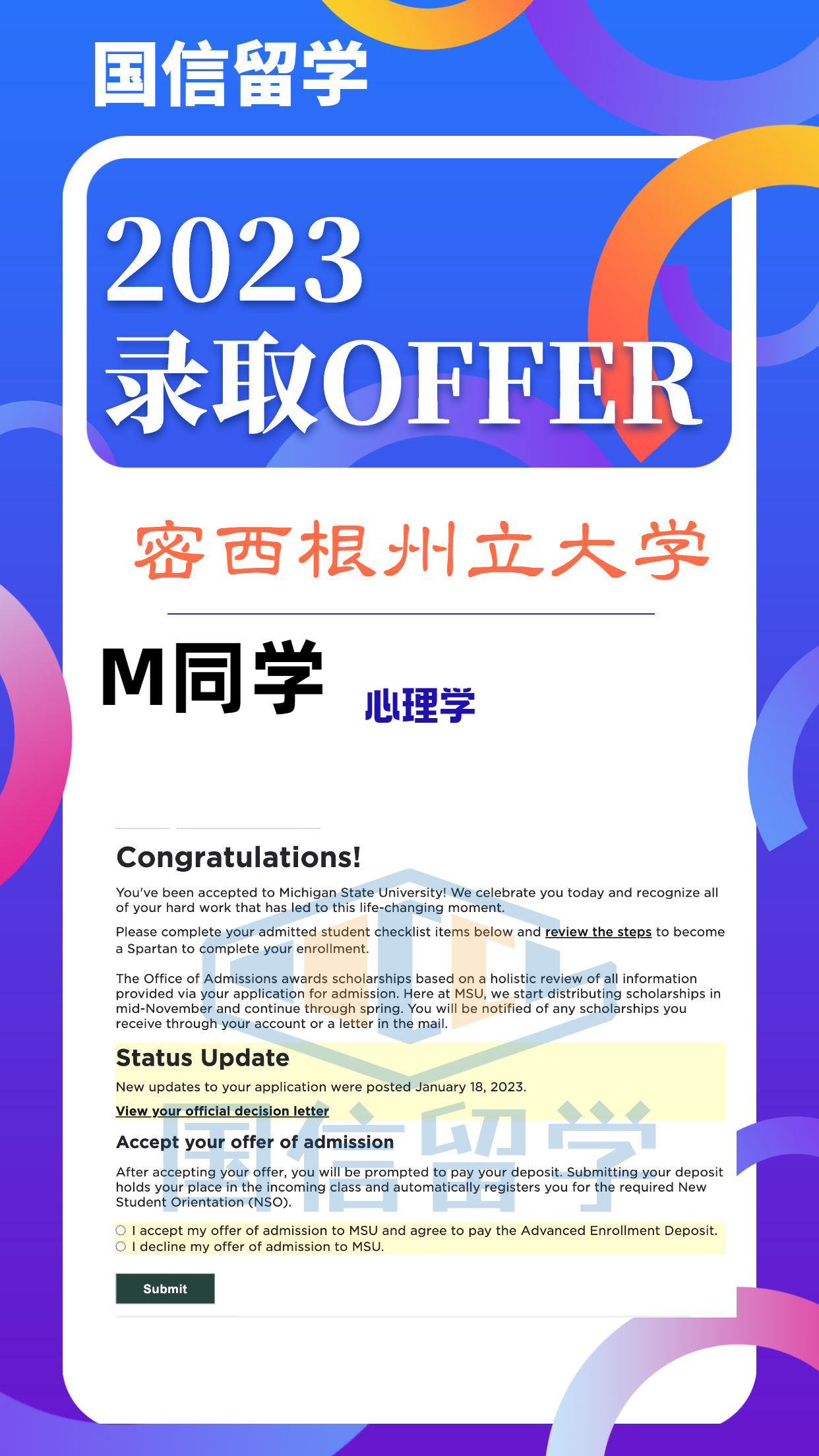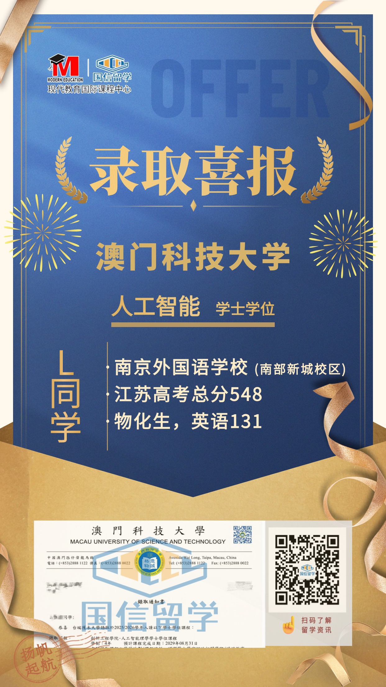 实力认证,国信留学已帮助学子获得 13000+枚世界知名院校录取