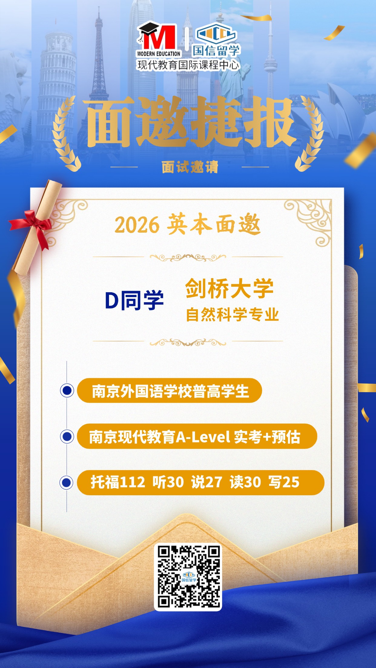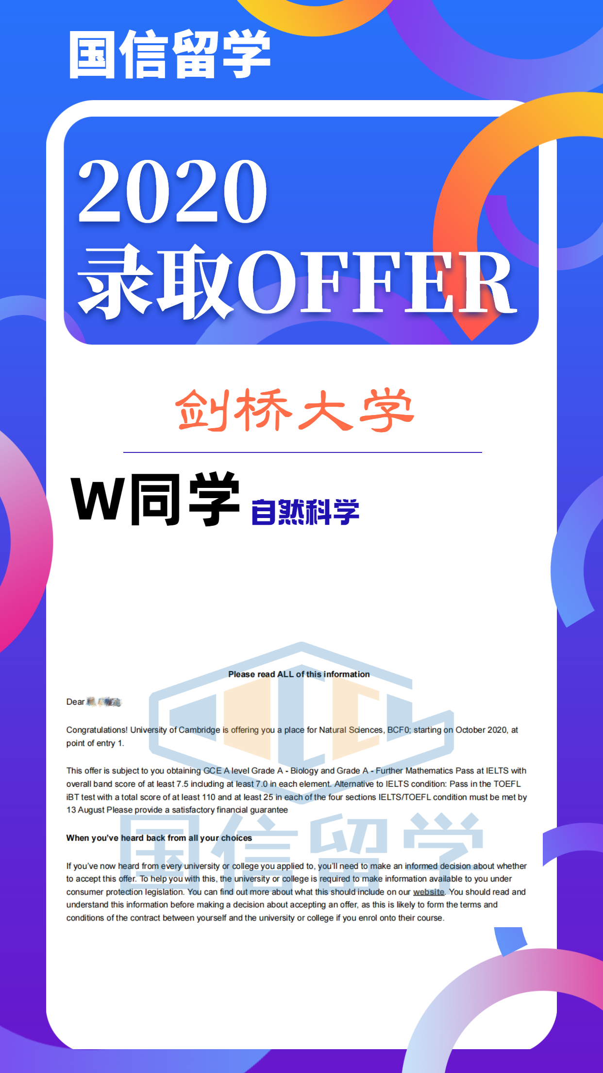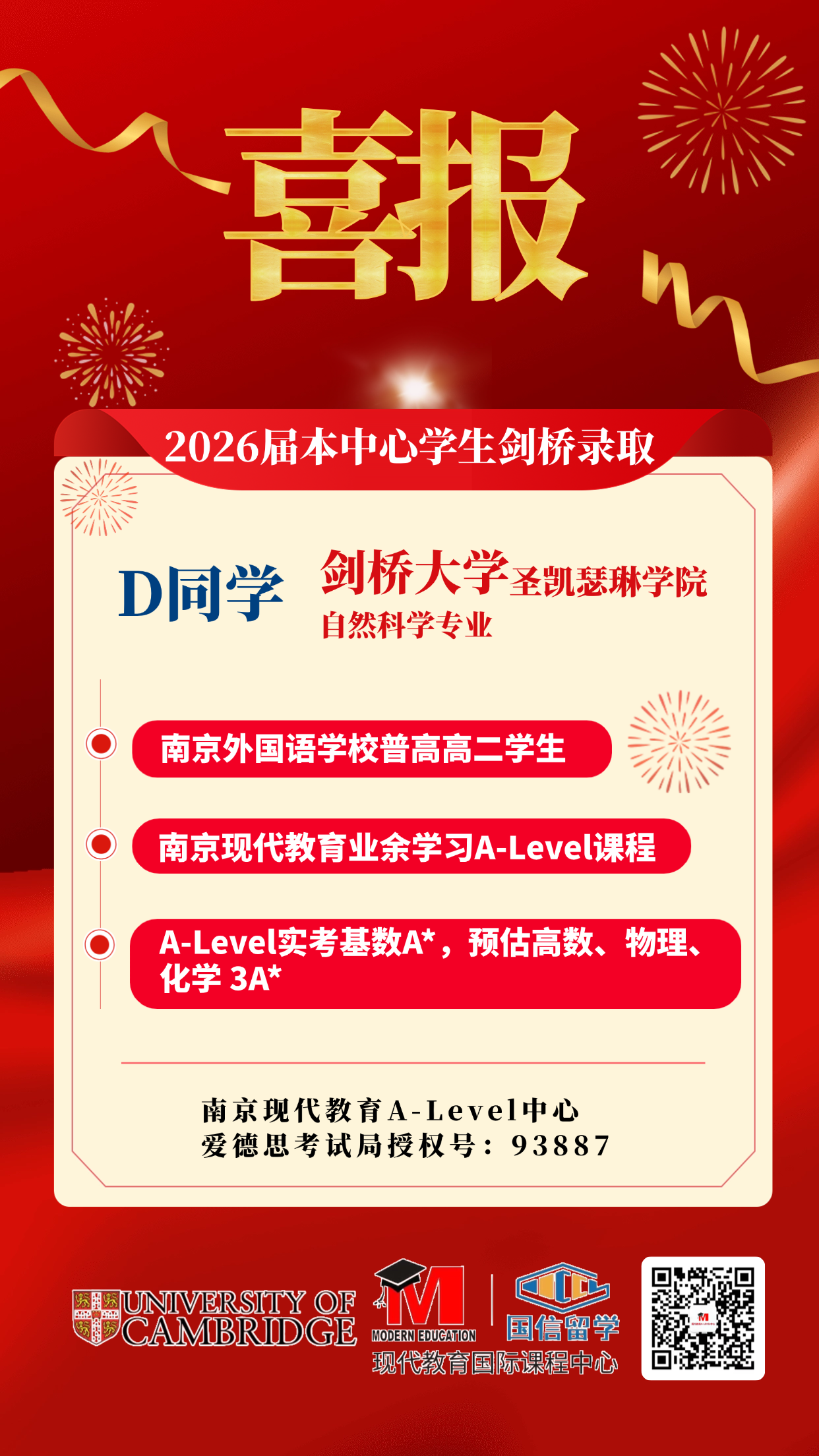 D同学 剑桥大学 自然科学专业