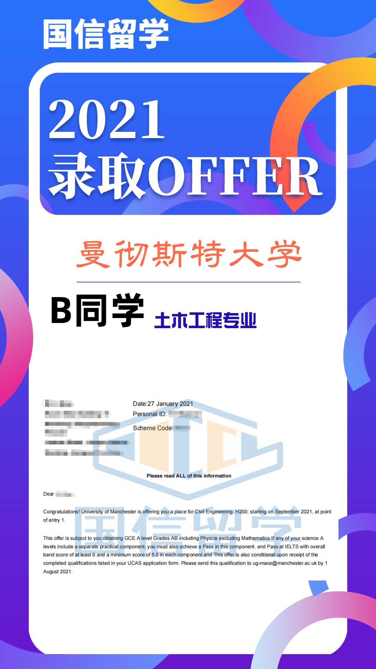 申请背景:英国曼彻斯特大学 二等二学位,无GRE