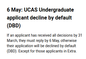 大家一定要注意自己的UCAS的信息,定期查看,有部分学生之前会显示需要在6月3日之前做出决定,但现在的时间已经重新更换标注了,所以一定要多关注,不要错过时间哈~