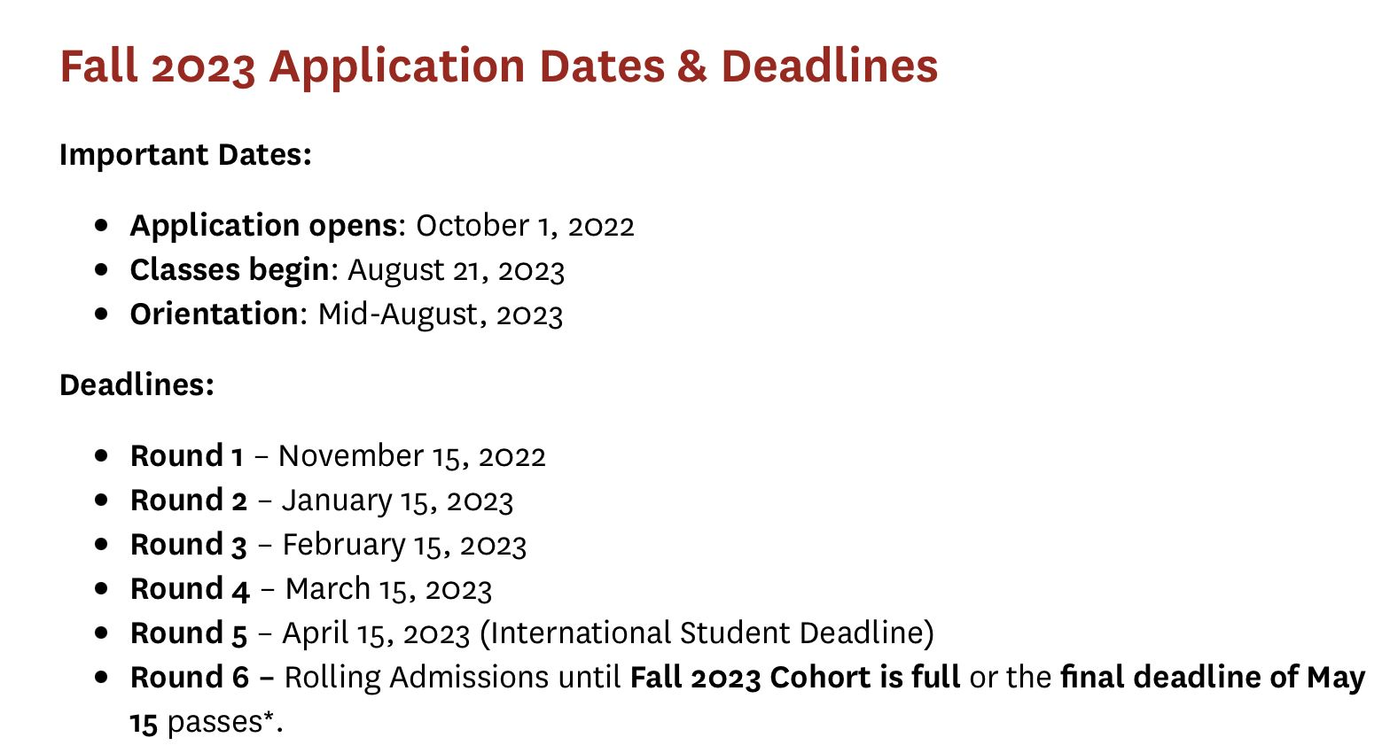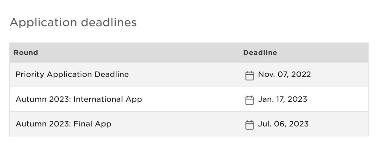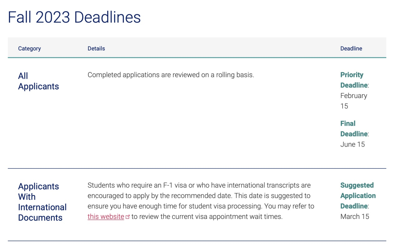 23fall申请截止日期参考: