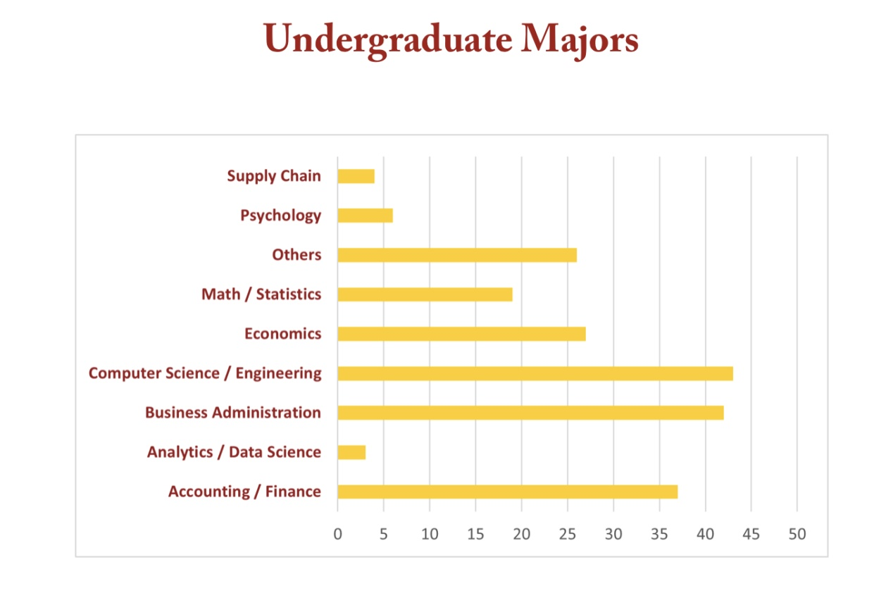 项目时长12-18个月(18个月的包含一个暑期实习),招生规模在40人(招生人数比之前缩减了,大陆本科很少,倾向于录取美本的学生,最好有一定工作经验的申请者。GRE/GMAT最好有较高的分数。