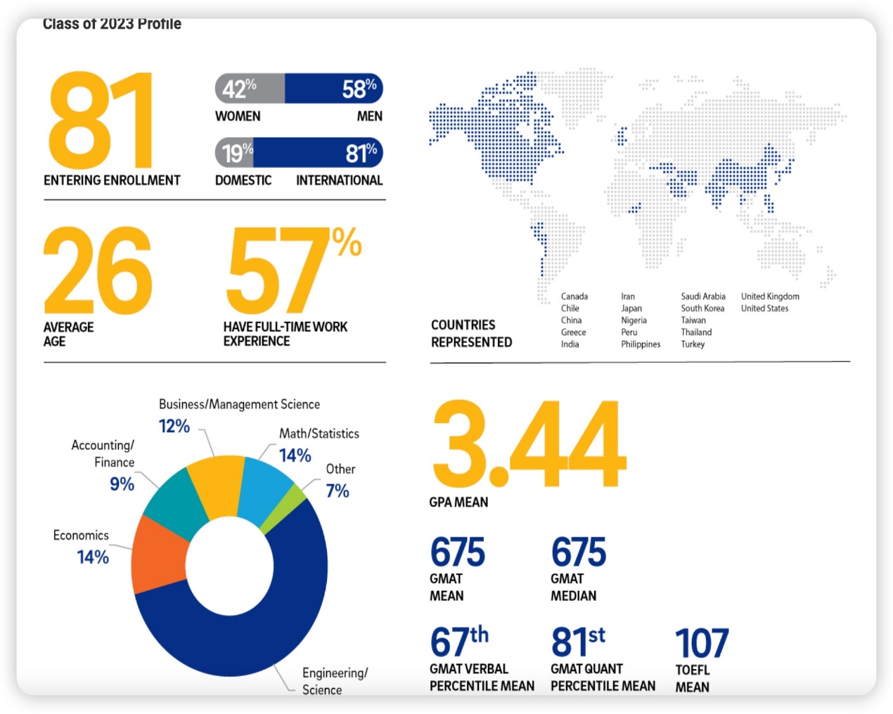 MIT的这个项目是2016年开设的,项目时长12个月,官网给出的信息是2023级班级人数78人,但是这个项目的难度是地狱级别,GPA中位数是3.88(一半的人3.88+),绝大多数学生来自理工科背景。