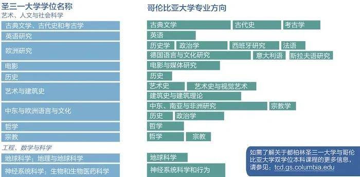 都柏林三一学院和哥伦比亚大学的双学士学位课程