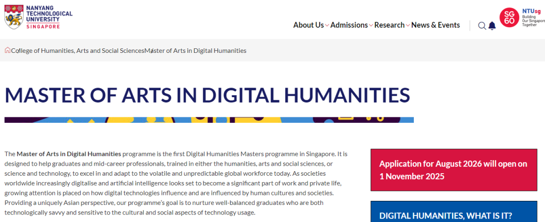 这是新加坡首个专门面向数字人文学科 的硕士学位。