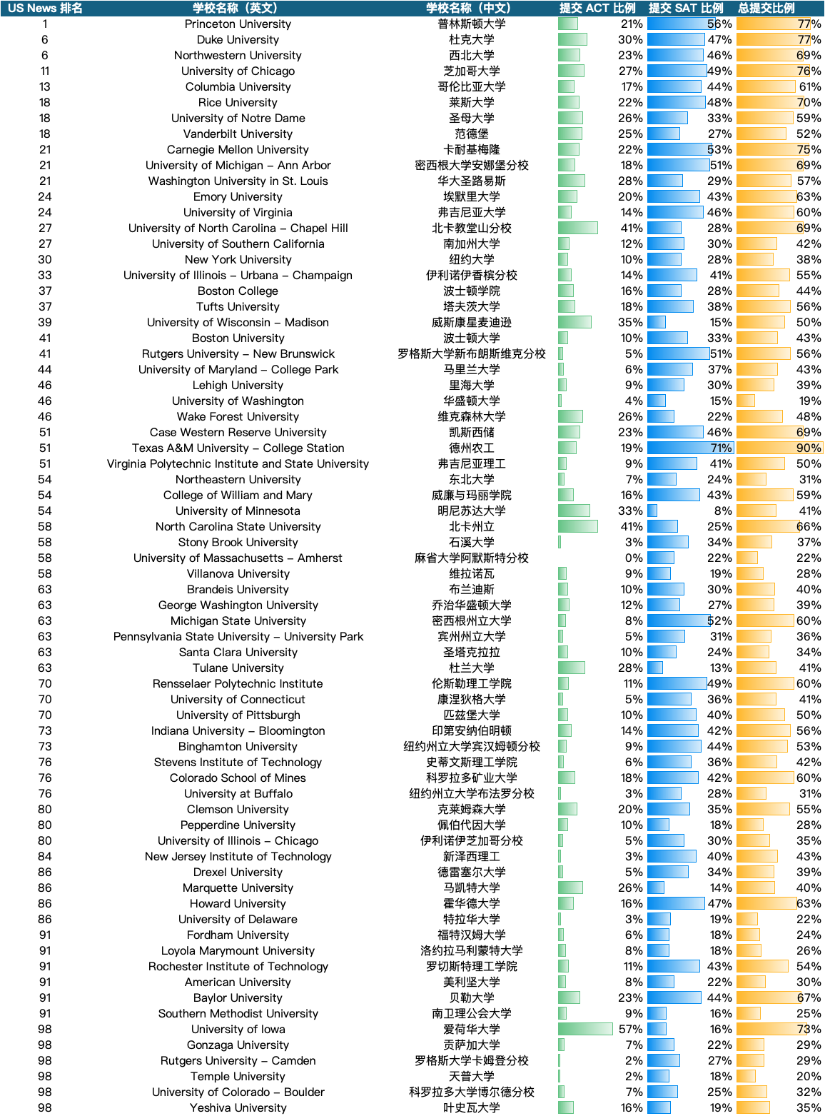 就是:申请(或录取)学生中,有多少人提交了 SAT/ACT 成绩。