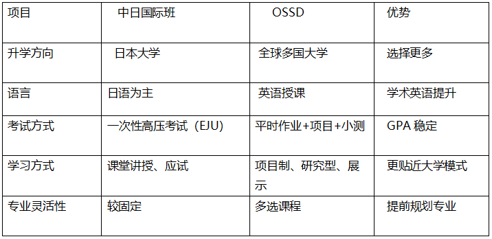 优势对比 (中日国际班 vs OSSD)