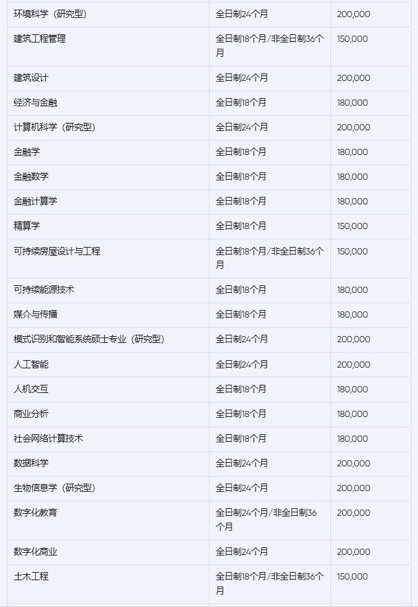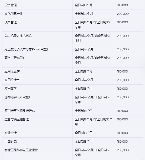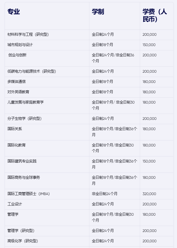 西交利物浦大学2026年硕士研究生学费因专业、学制不同而有所差异,详情如下~