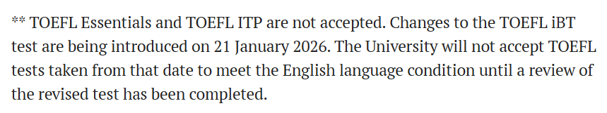 继剑桥之后,又一所G5院校牛津大学也在官网宣布:自2026年1月21日起,不再接受新版TOEFL iBT成绩作为本科语言能力证明。