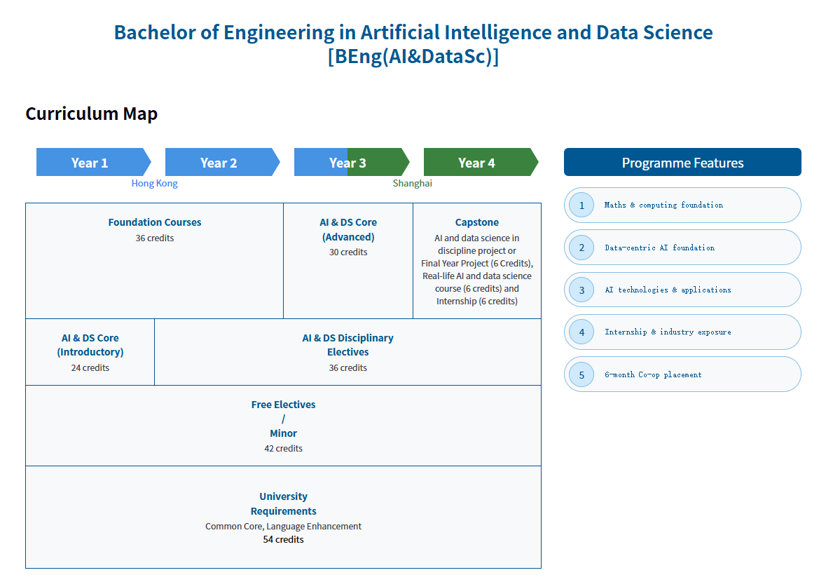 香港大学计算与数据科学学院允许学生在第一年学习以后选择专业方向。两个本科专业: