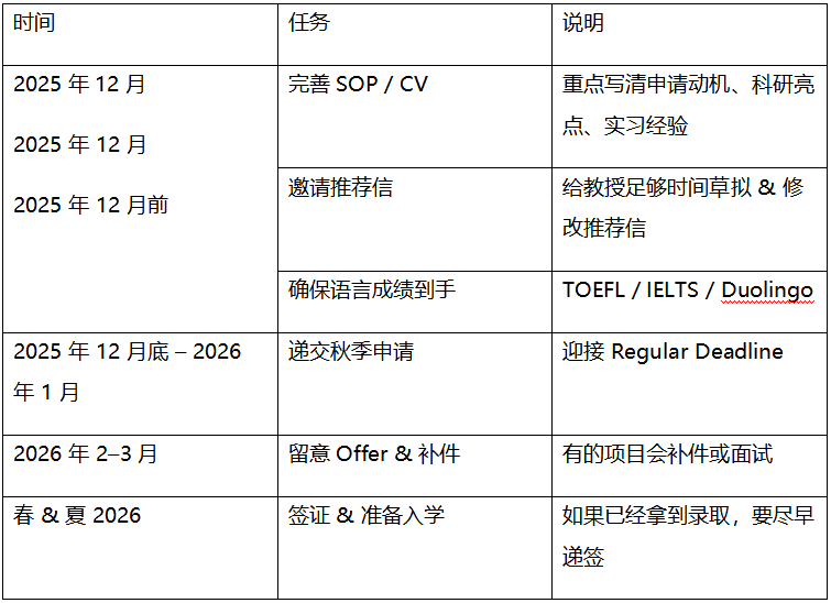 如果你目标是2026年秋季入学,虽然时间紧张,但操作可行: