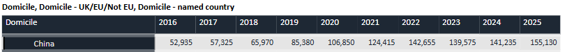 从申请量来看,2025Fall中国大陆学生的申请总量为155,130份,同比(2024Fall为141,235份)增长了13,895份,同比增长约10%。