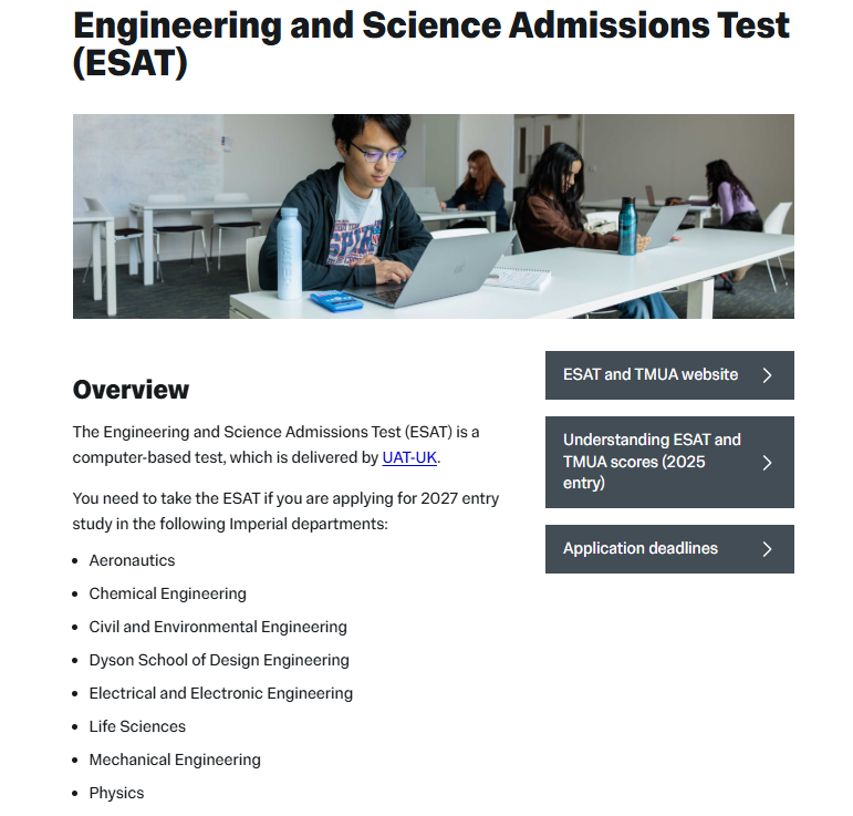IC官方最新更新,从2026年申请季开始(即2027fall起入学的学生),申请生命科学学院(Department of Life Sciences)下属所有专业的申请者都必须参加ESAT笔试。