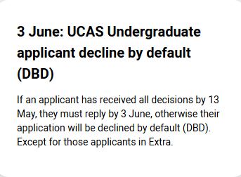 大家一定要注意自己的UCAS的信息,定期查看,有部分学生之前会显示需要在6月3日之前做出决定,但现在的时间已经重新更换标注了,所以一定要多关注,不要错过时间哈~