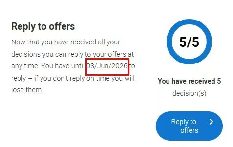 2026年6月3日:如果在5月13日前收到所有申请的结果,需要在6月3日之前做出回复,选择志愿。(处于 Extra 补申阶段的申请者除外)
