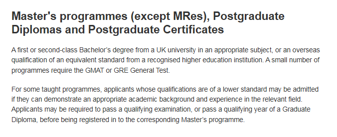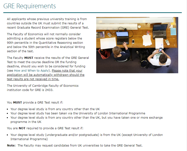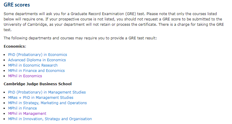 部分专业还有额外要求,例如MPhil in Economics专业还要求GRE的分析性写作达到50%