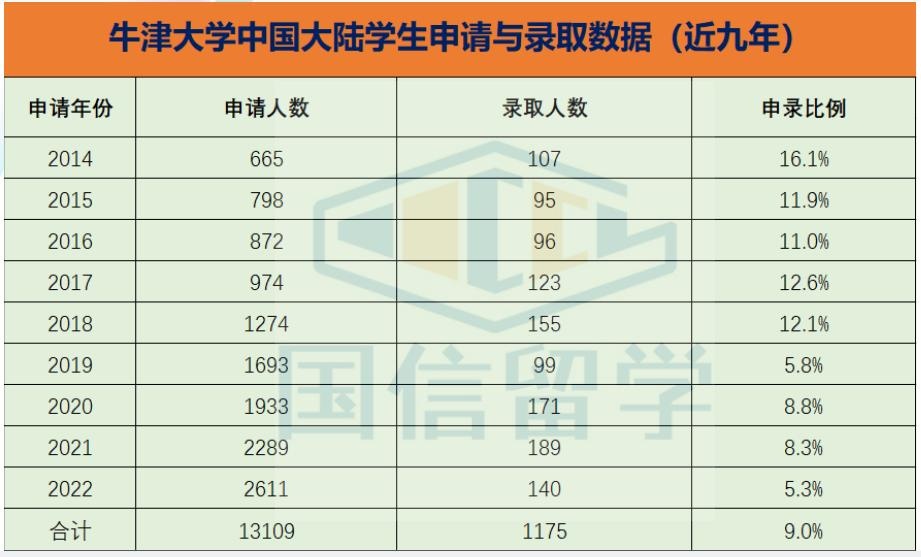 ※ 中国学生(指持中国大陆PR的学生)申请牛津本科的学生连续九年增加,录取人数上升不如人意,录取比例较2018年及以前有所下降,其牛津本科申请的竞争不言而喻。