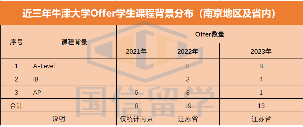 ※ 录取学生的课程背景集中在A-Level、IB和AP中,中加课程和中澳课程在申请牛津等名校还未显现优势。