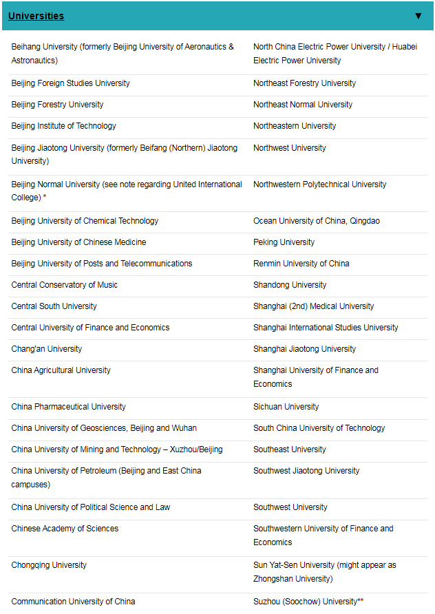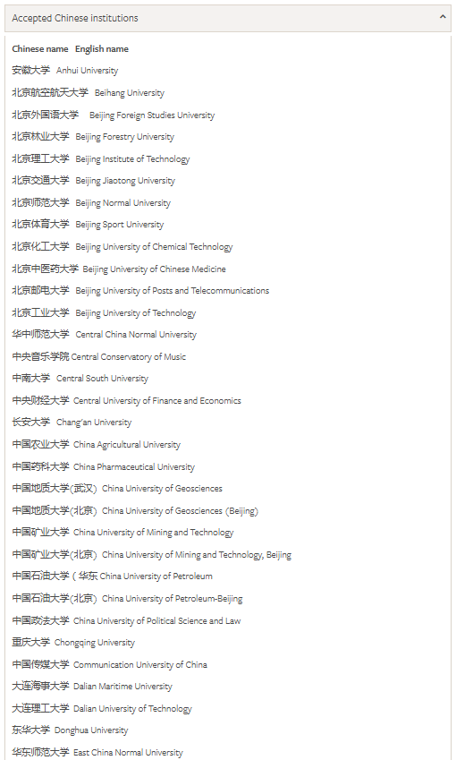 以下为QS前100中部分院校的可接受的中国本科院校名单list。