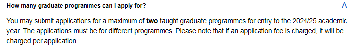 部分专业有不同限制,比如,如果申请MSc Applied Mathematics为第二志愿,那么第一志愿必须是MSc Pure Mathematics。