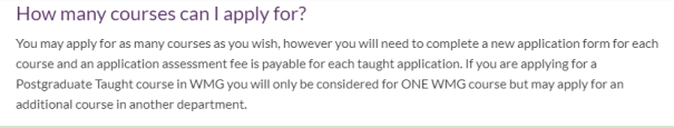 华威大学可以同时申请多个专业,每个专业单独递交申请。注意华威WMG学院只能选择一个专业申请。