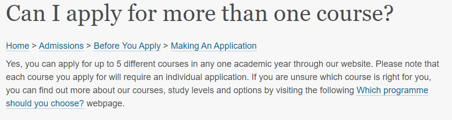 虽然这些英国院校不限制申请个数,但是小编还是建议大家,不要随便一所院校多申专业,不仅仅是申请材料单独准备的复杂,还会牵扯到招生官质疑申请动机的问题,同学们还是谨慎选择专业~