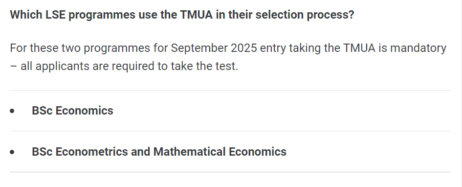 2025Fall LSE 本科三大专业(①数据科学②数学、统计学与商业③精算学)提高了A-level 成绩要求,从原本的 AAA 提至A*AA,且新增 TMUA 笔试。