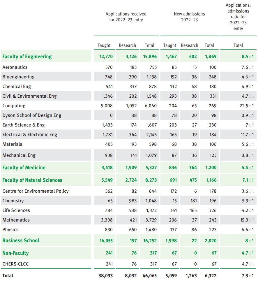 帝国理工学院2022-23本科、硕士录取数据!哪个专业录取率最低?