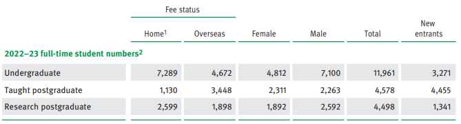 2022-23 学年,新入学全日制学生为 9,067 人。其中本科 3,271 人,授课型硕士研究生 4,455 人,研究型硕士研究生 1,341 人。