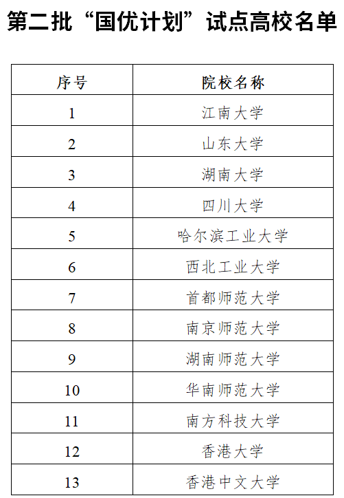 2.第二批“国优计划”高校名单如下: