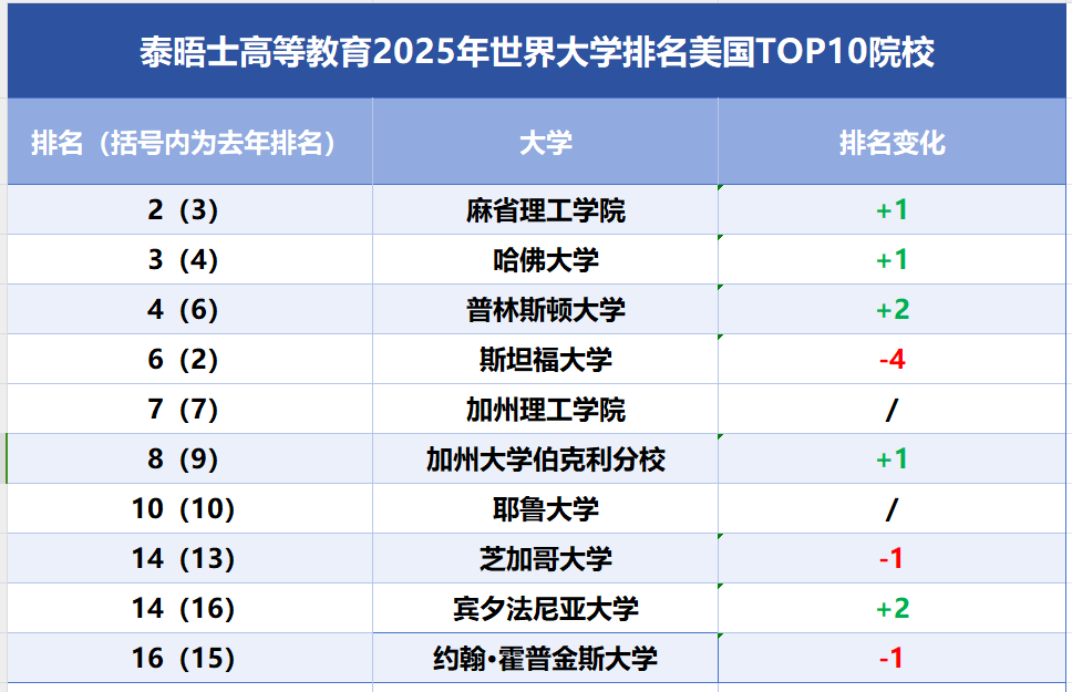 去年世界第2的斯坦福大学下降4位,降至世界第6,此外,芝加哥大学、约翰·霍普金斯大学均下降1位。
