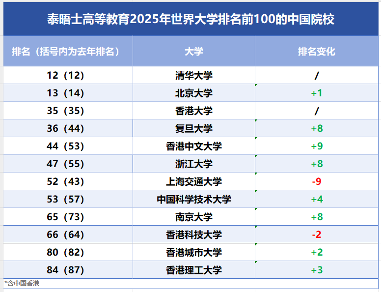 今年中国内地共有7所院校进入世界前100,13所学校跻身世界前200名!